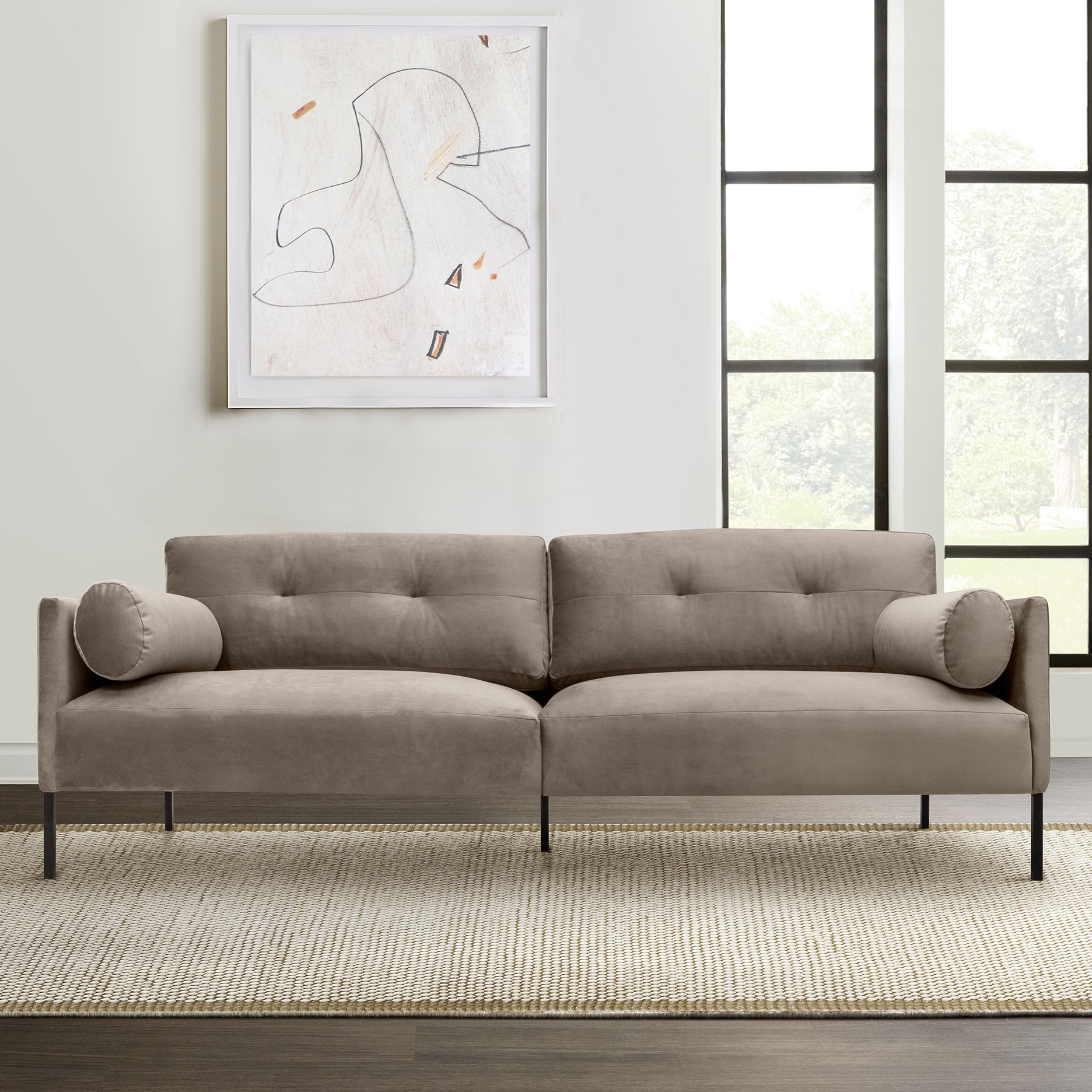 Michalina 84 in. Modern Sofa in Fossil Gray Velvet, and Black Metal Legs