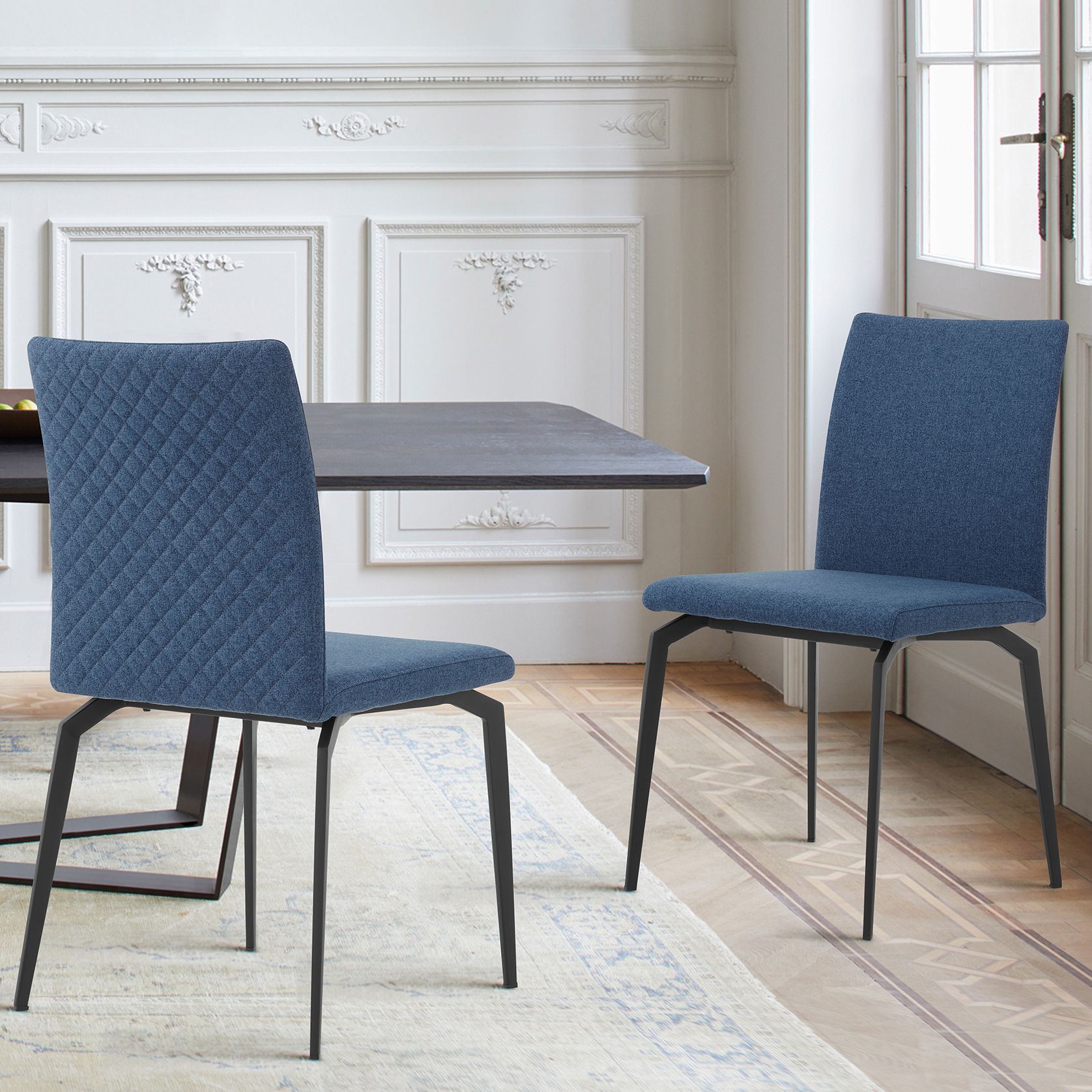 Lyon Set of 2 Dining Chairs in Blue Fabric, Plywood, and Metal