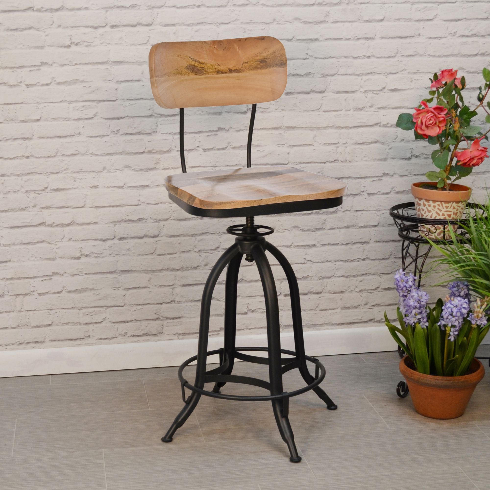 Mason Black Base Natural Seat Adjustable Barstool