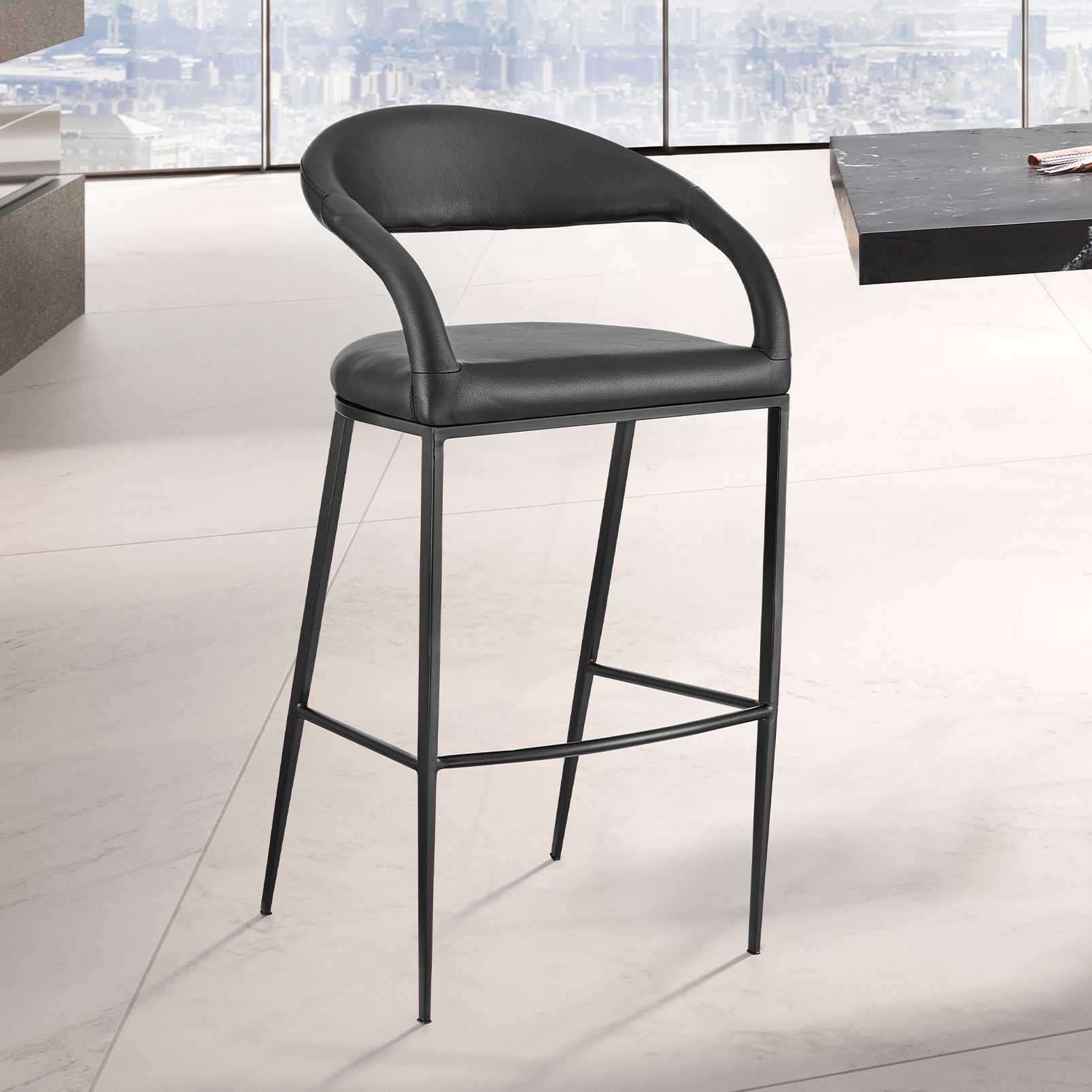 Ramona 26 in. Bar Stool with Matte Black Iron and Black Faux Leather