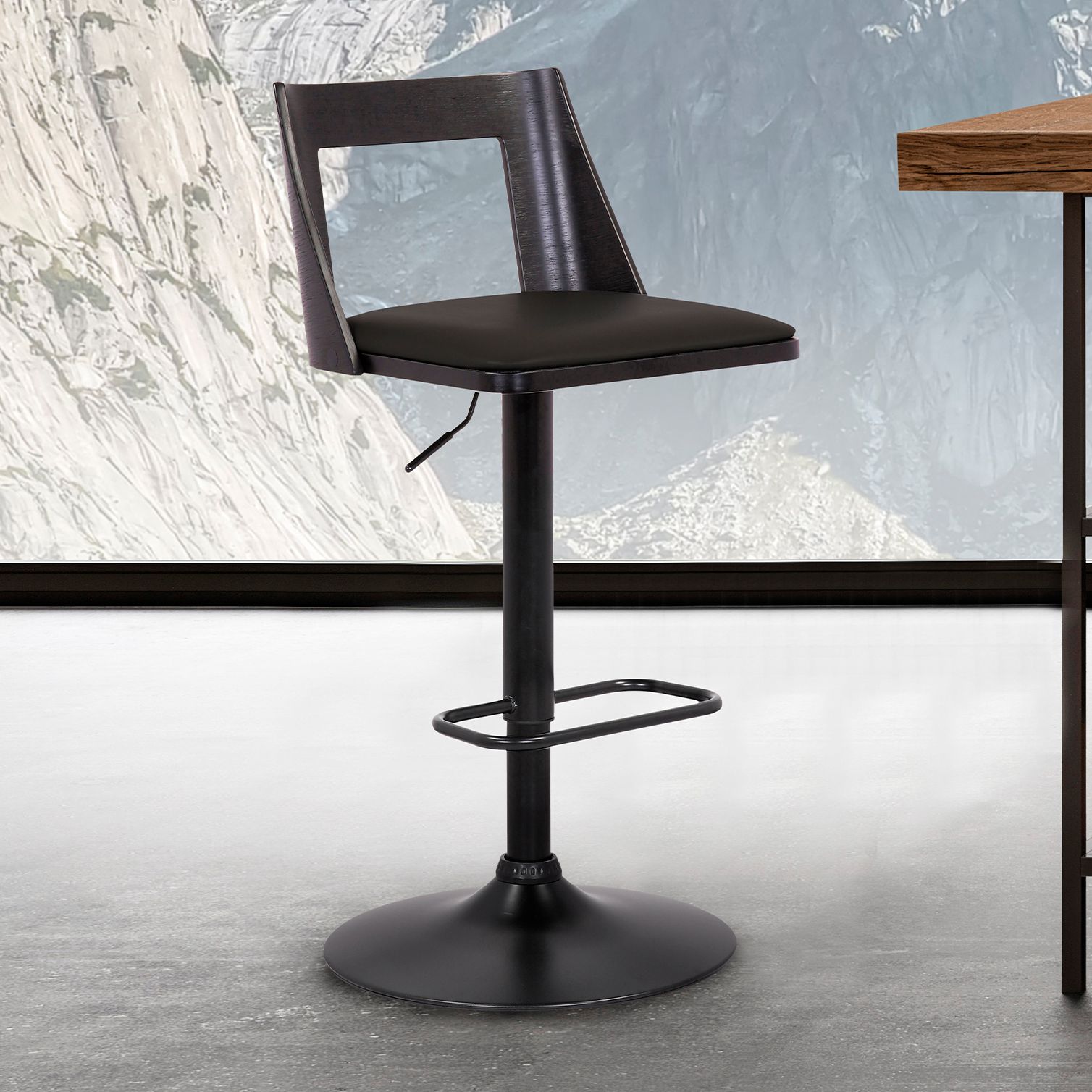 Milan Adjustable Swivel Barstool in Black Powder Coated Finish, Black
