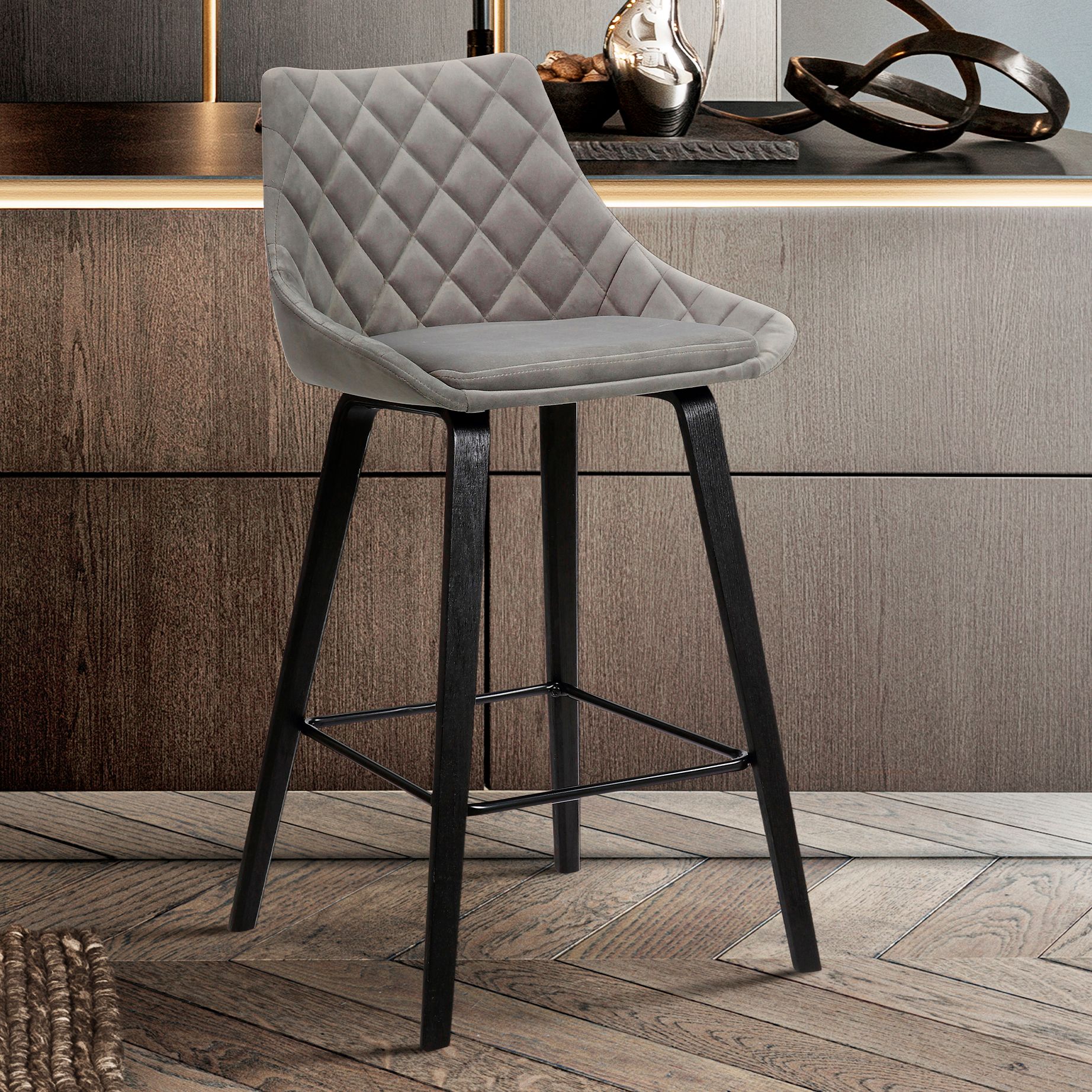 Dani 26 in. Barstool in Black Powder Coated Finish with Gray Faux Velvet