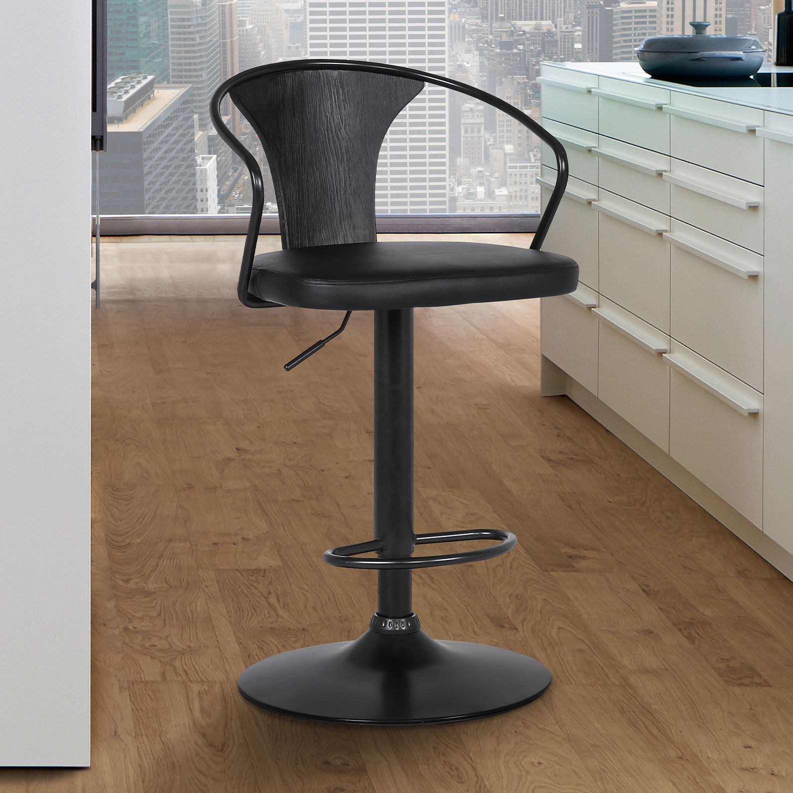 Eagle Adjustable Swivel Barstool in Black Powder Coated, Black Faux Leather