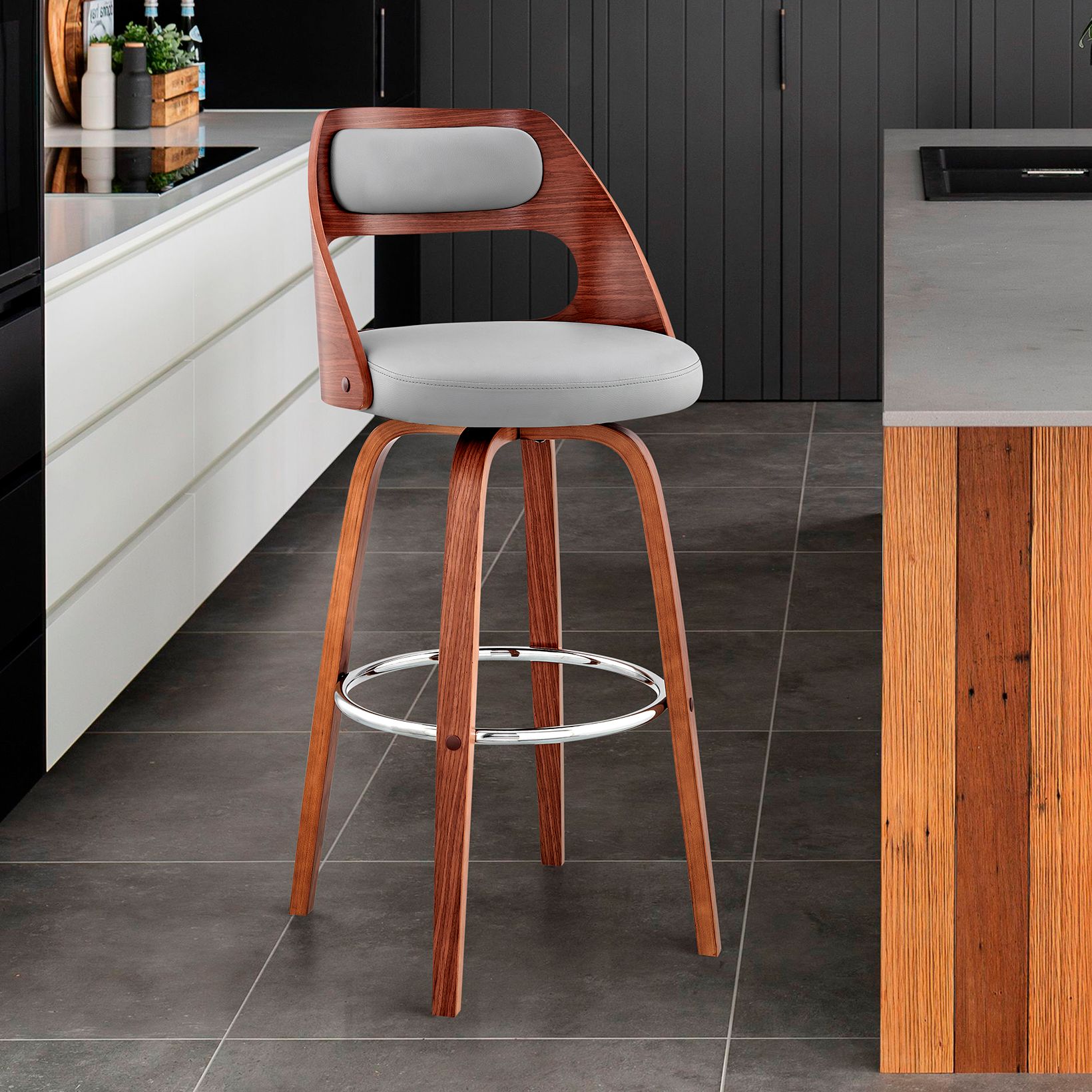 Julius 26 in. Barstool in Walnut Finish with Gray Faux Leather