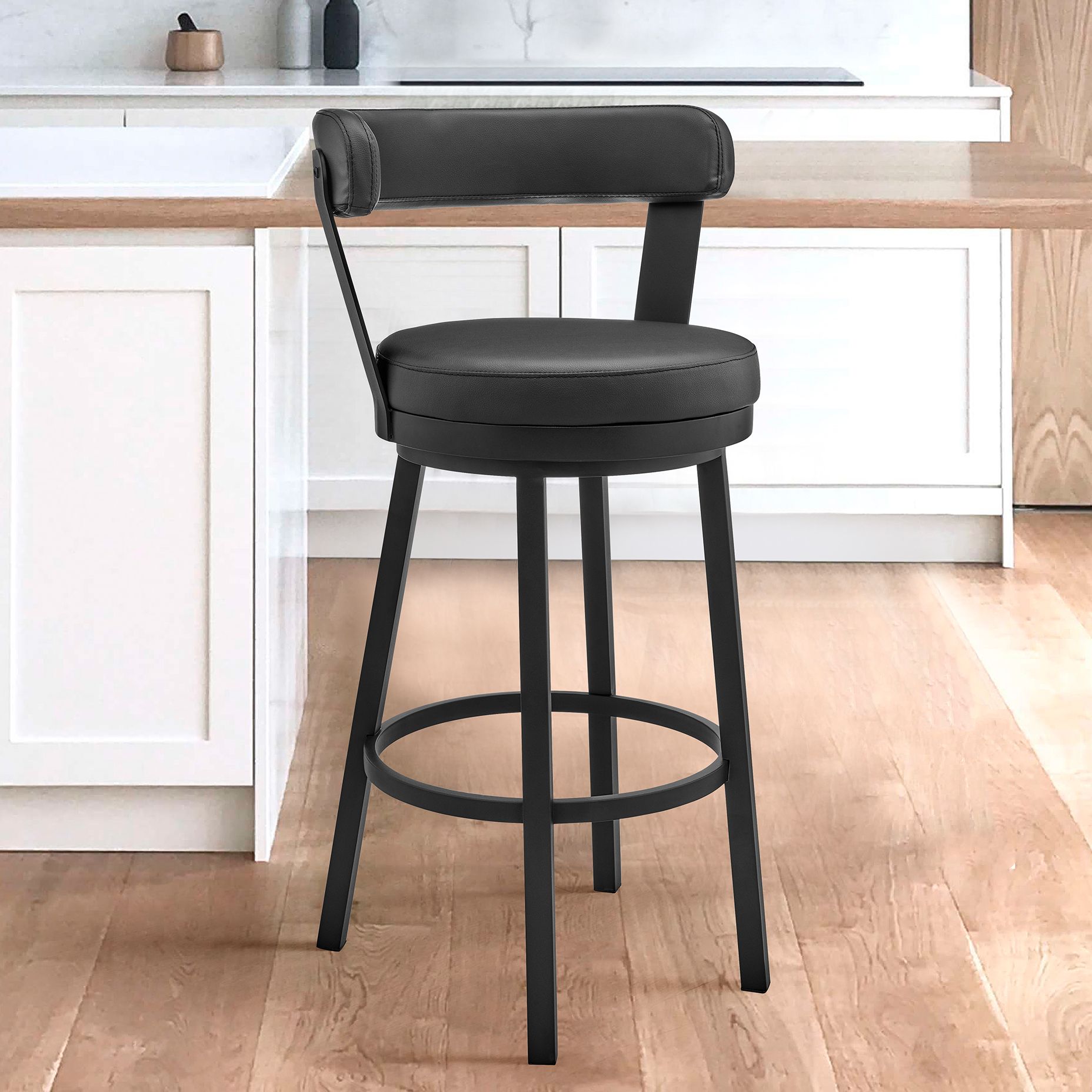 Bryant 26 in. Swivel Barstool in Black Finish, Black Faux Leather