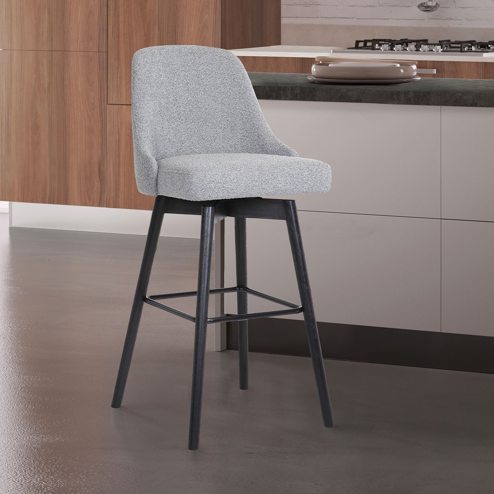 Sicily 26 In. Swivel Counter Stool in Black Wood and Light Grey Fabric