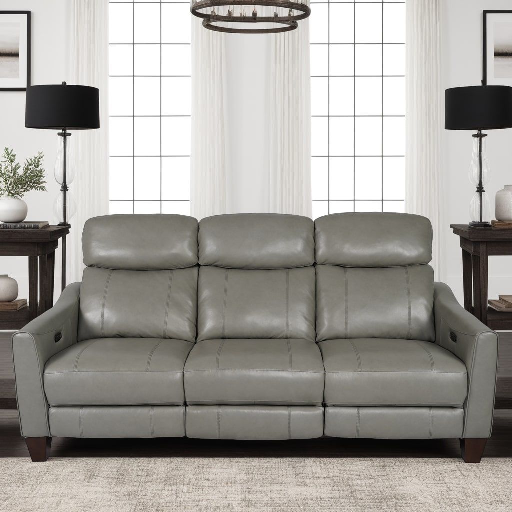 Milos 83 in. Zero Gravity Power Reclining Sofa in Light Gray Leather