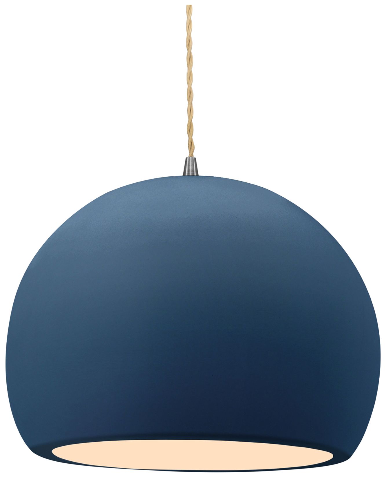 12.25"W Sky Blue Frame Nickel Large Globe Beige Twisted Cord LED Penda