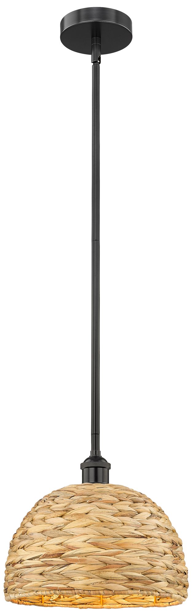 Edison Woven Rattan 12" Wide Matte Black Stem Hung Mini Pendant With