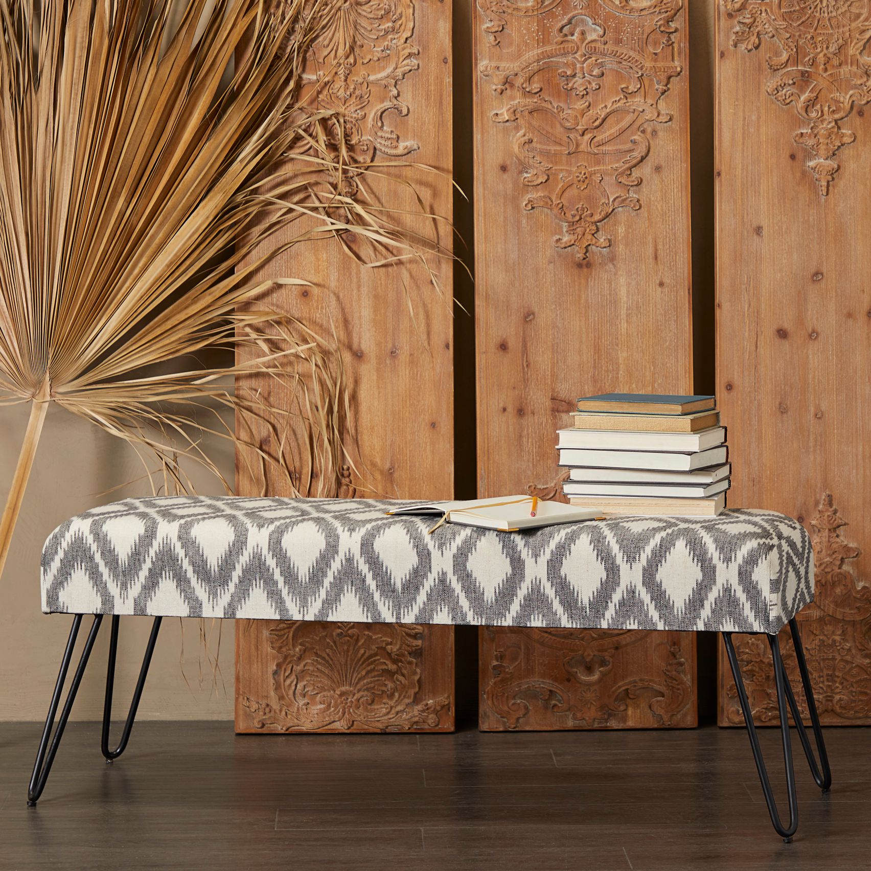 Arcata 47" Wide Gray White Diamond Rectangular Bench