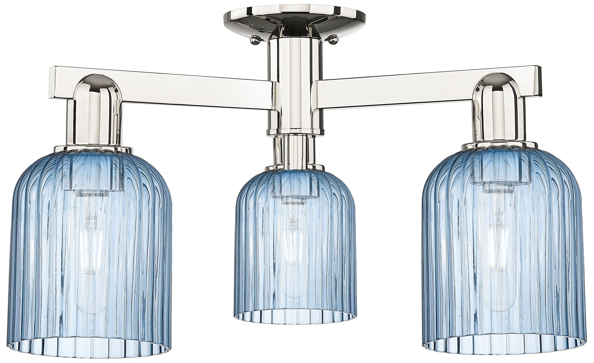 Bridal Veil 23"W 3 Light Polished Nickel Semi-Flush With Blue Shade