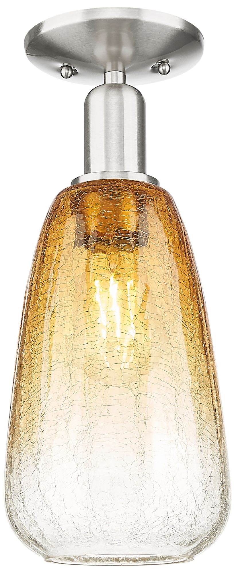Downtown Brookhaven Almond 6"W Satin Nickel Semi-Flush w/ Amber Shade
