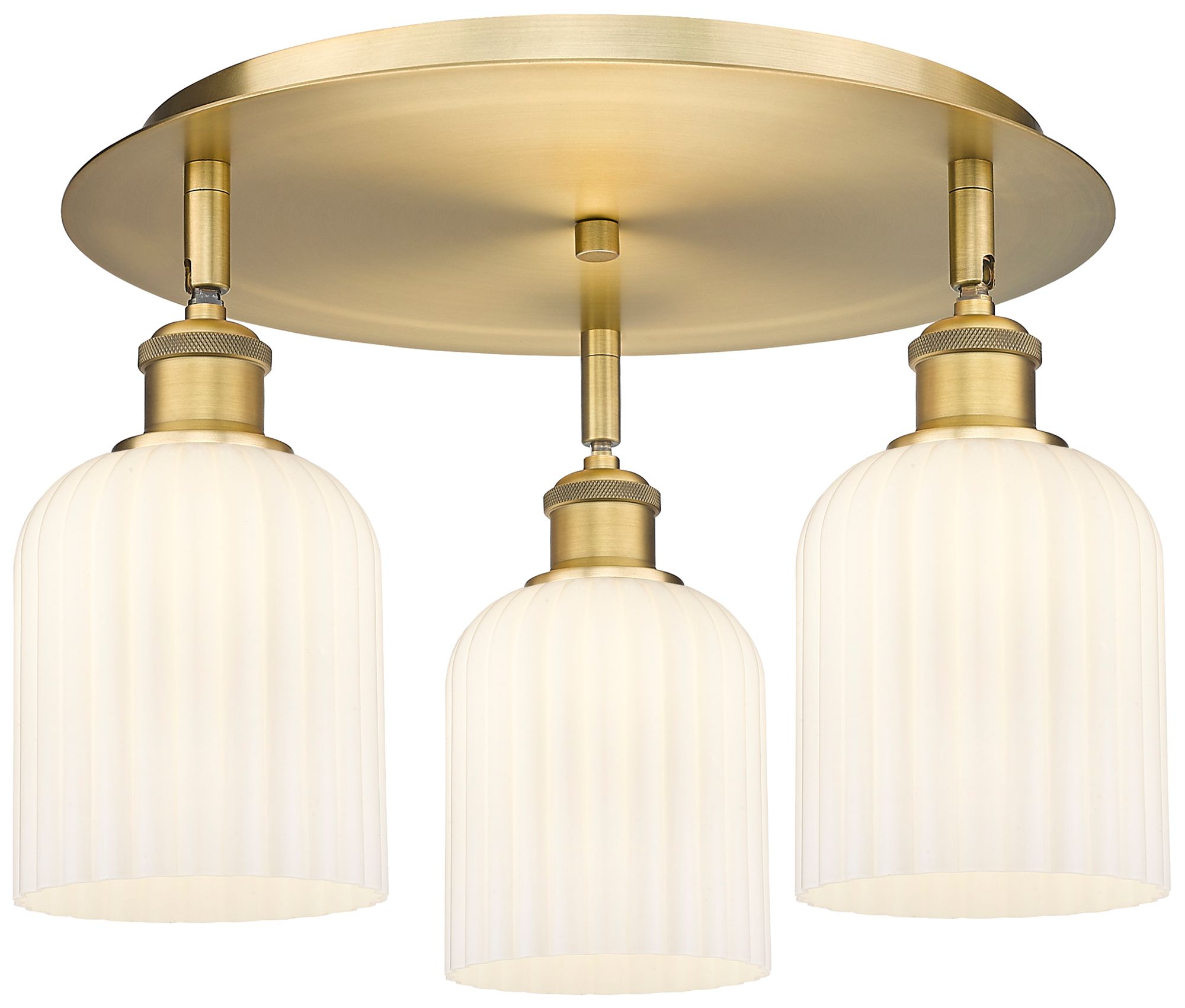 Ballston Bridal Veil 17" 3 Light Flush Mount Brushed Brass w/ White Shade