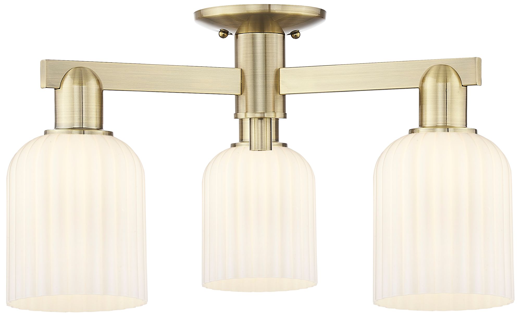 Bridal Veil 23"W 3 Light Antique Brass Semi-Flush w/ Gloss White Shade