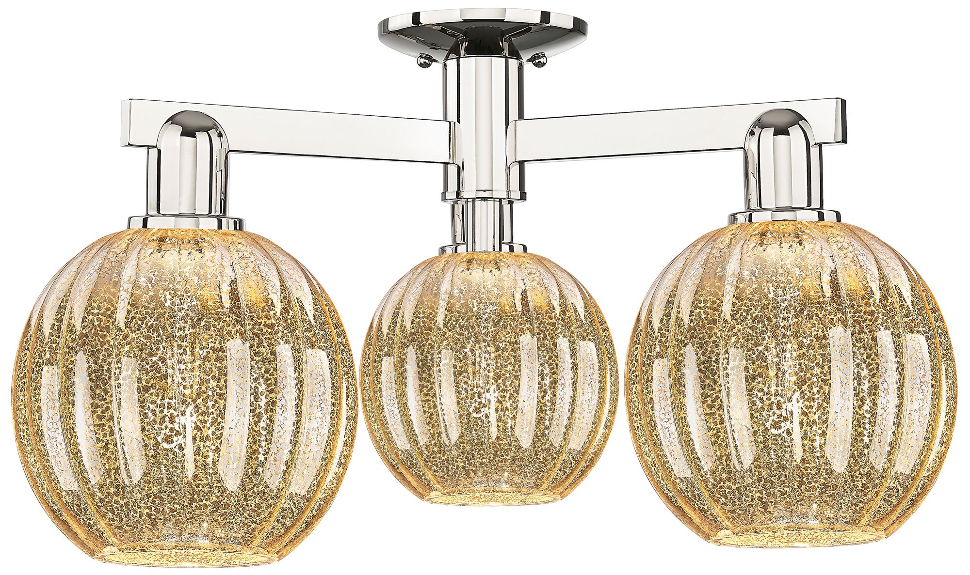 Preston 25"W 3 Light Polished Nickel Semi-Flush w/ Mercury Globe Shade