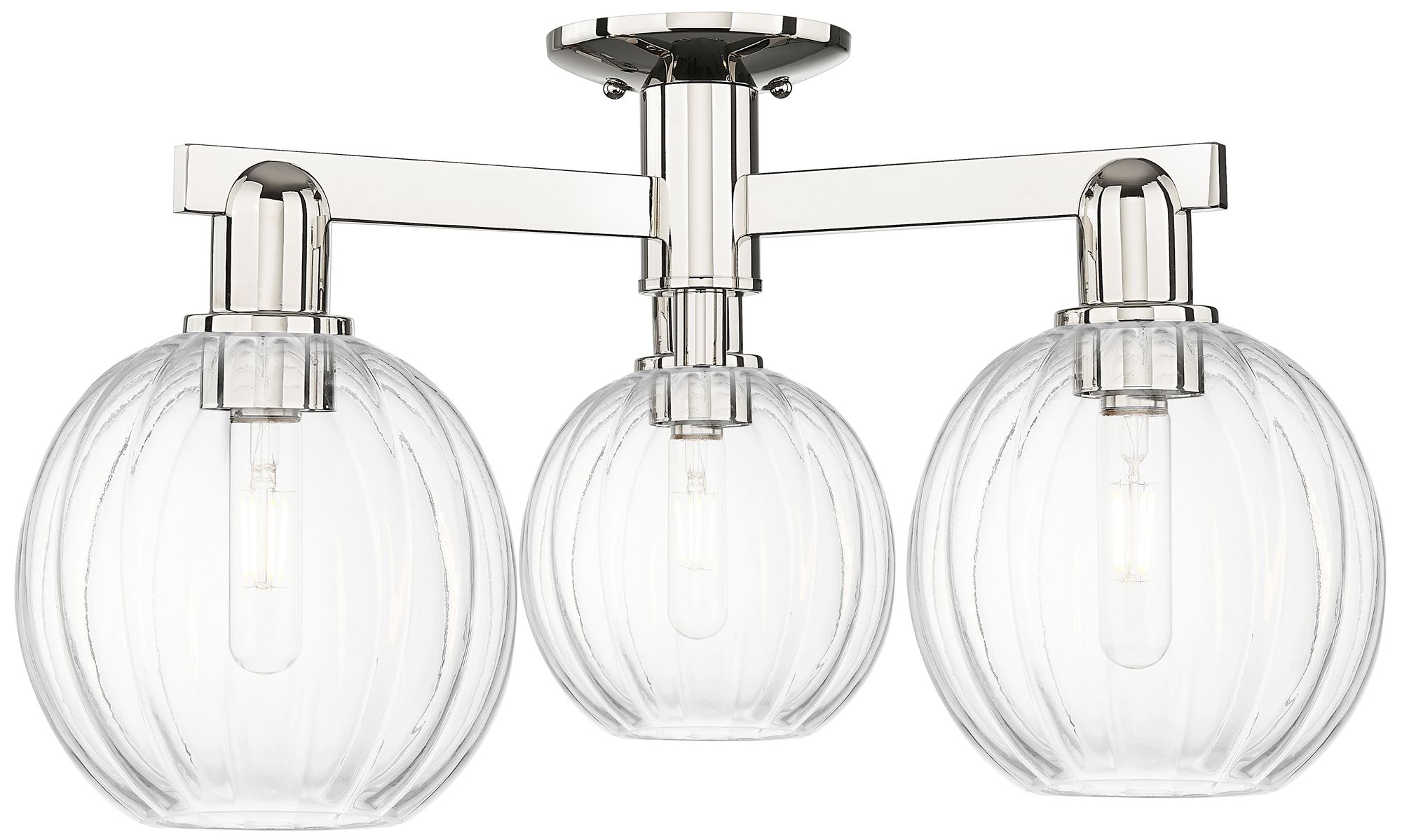 Preston 25"W 3 Light Polished Nickel Semi-Flush With Clear Globe Shade