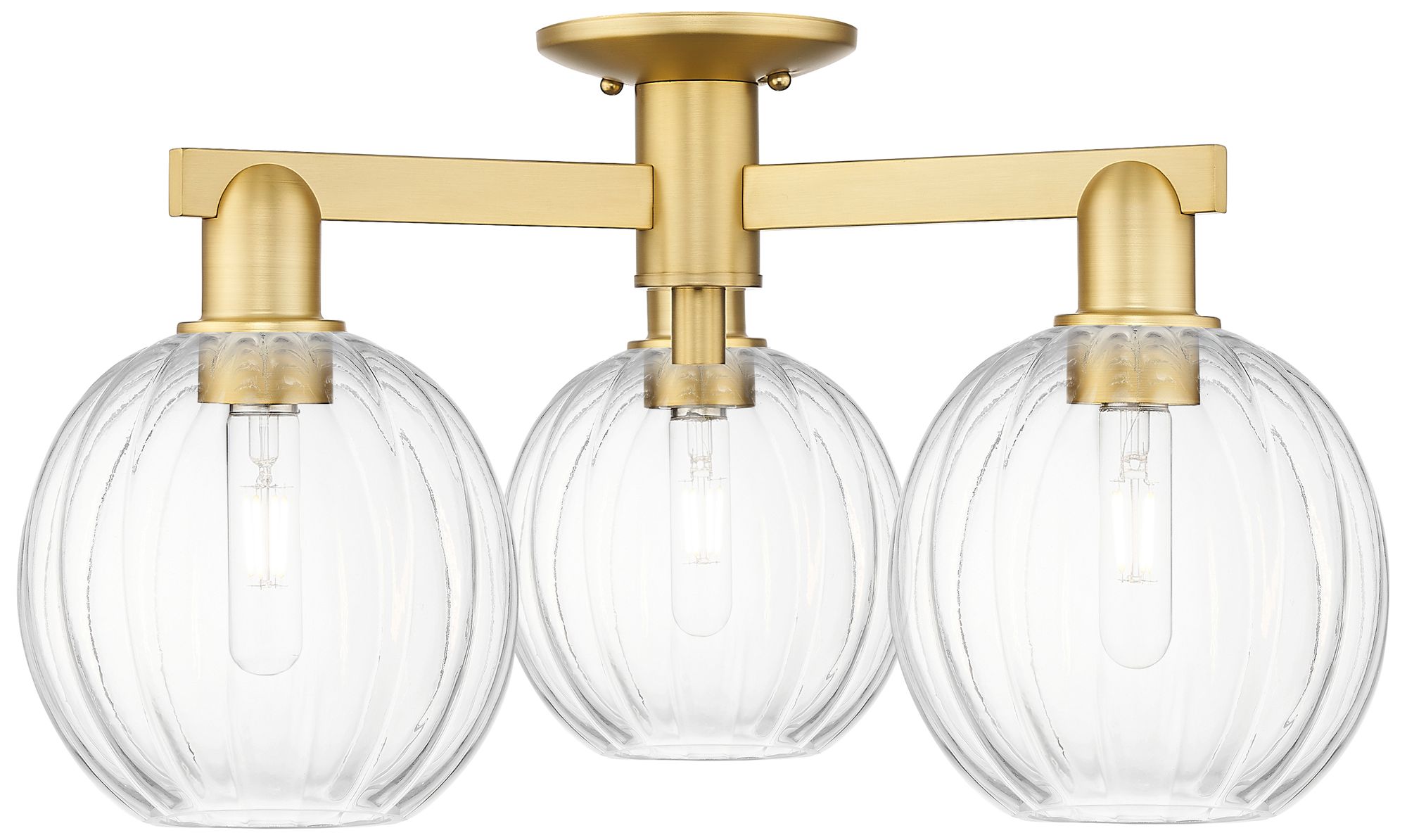 Preston 25"W 3 Light Satin Gold Semi-Flush Mount With Clear Globe Shade