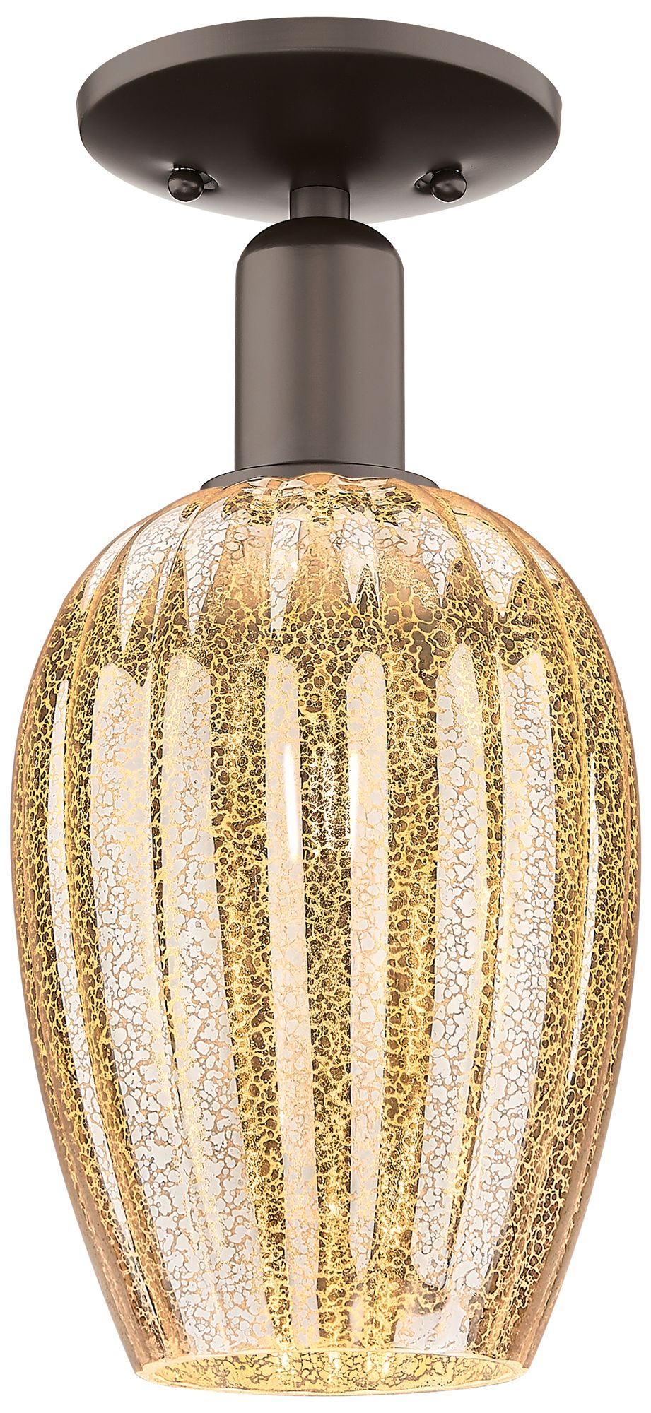 Preston 6"W Oil Rubbed Bronze Semi-Flush Mount With Mercury Flute Shade