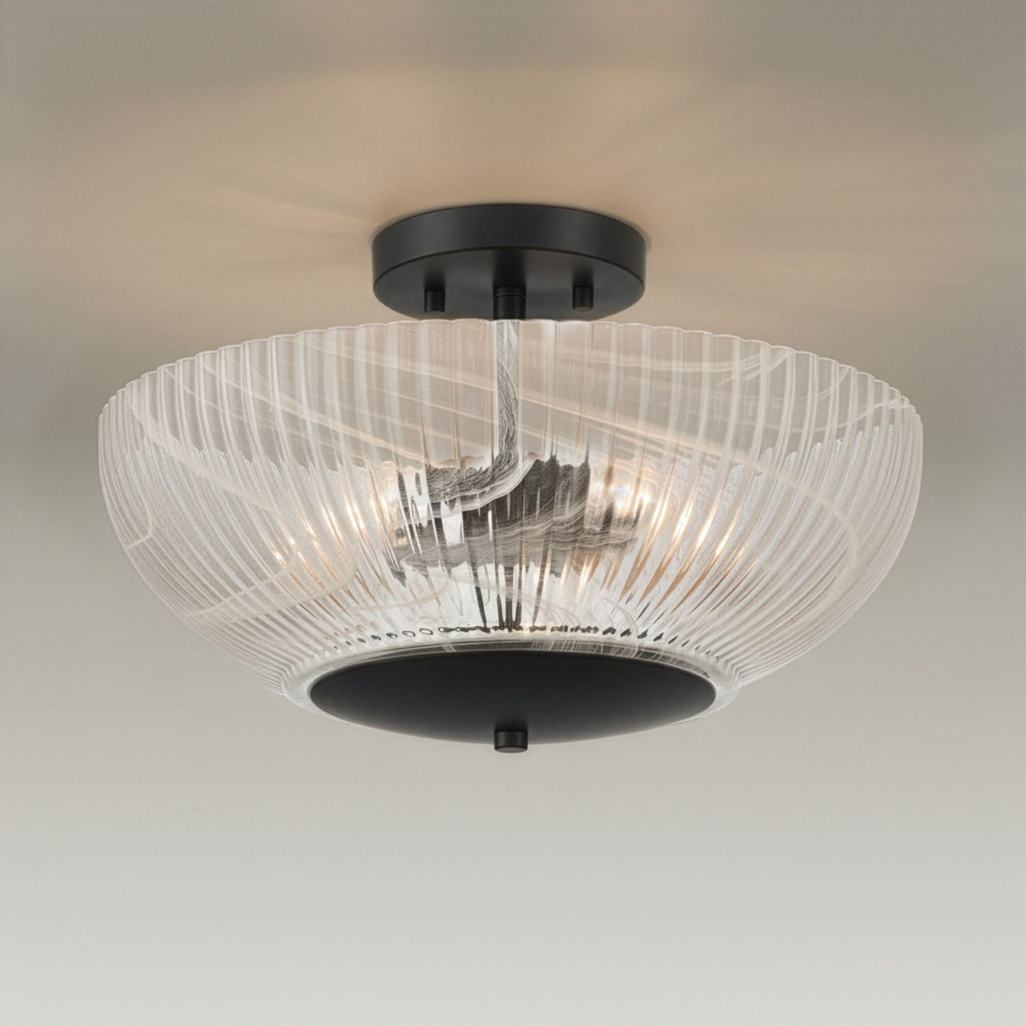 Possini Euro Harper 12"W Matte Black Hammered Glass Mini-Pendant Light