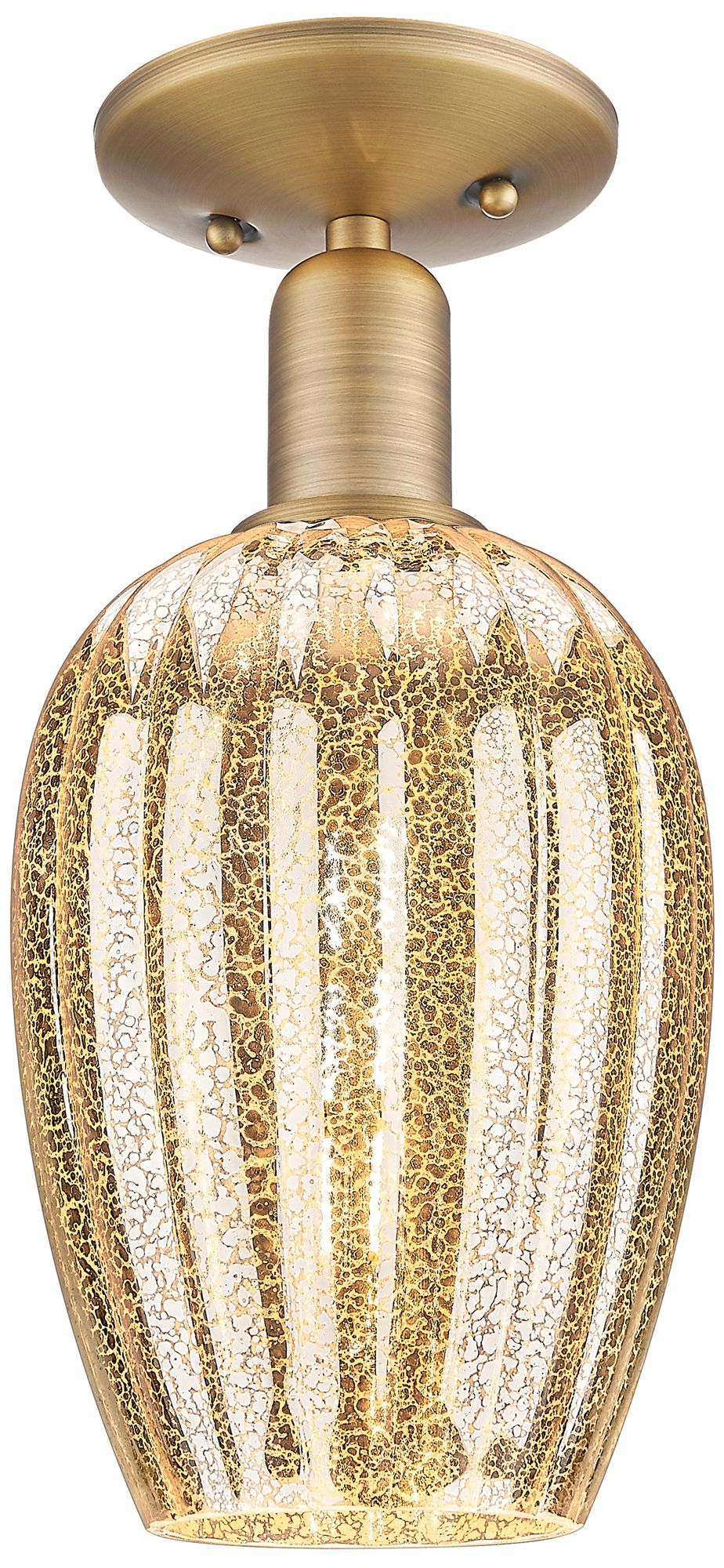 Downtown Preston 6"W Brass Semi Flush Mount w/ Mercury Flute Shade
