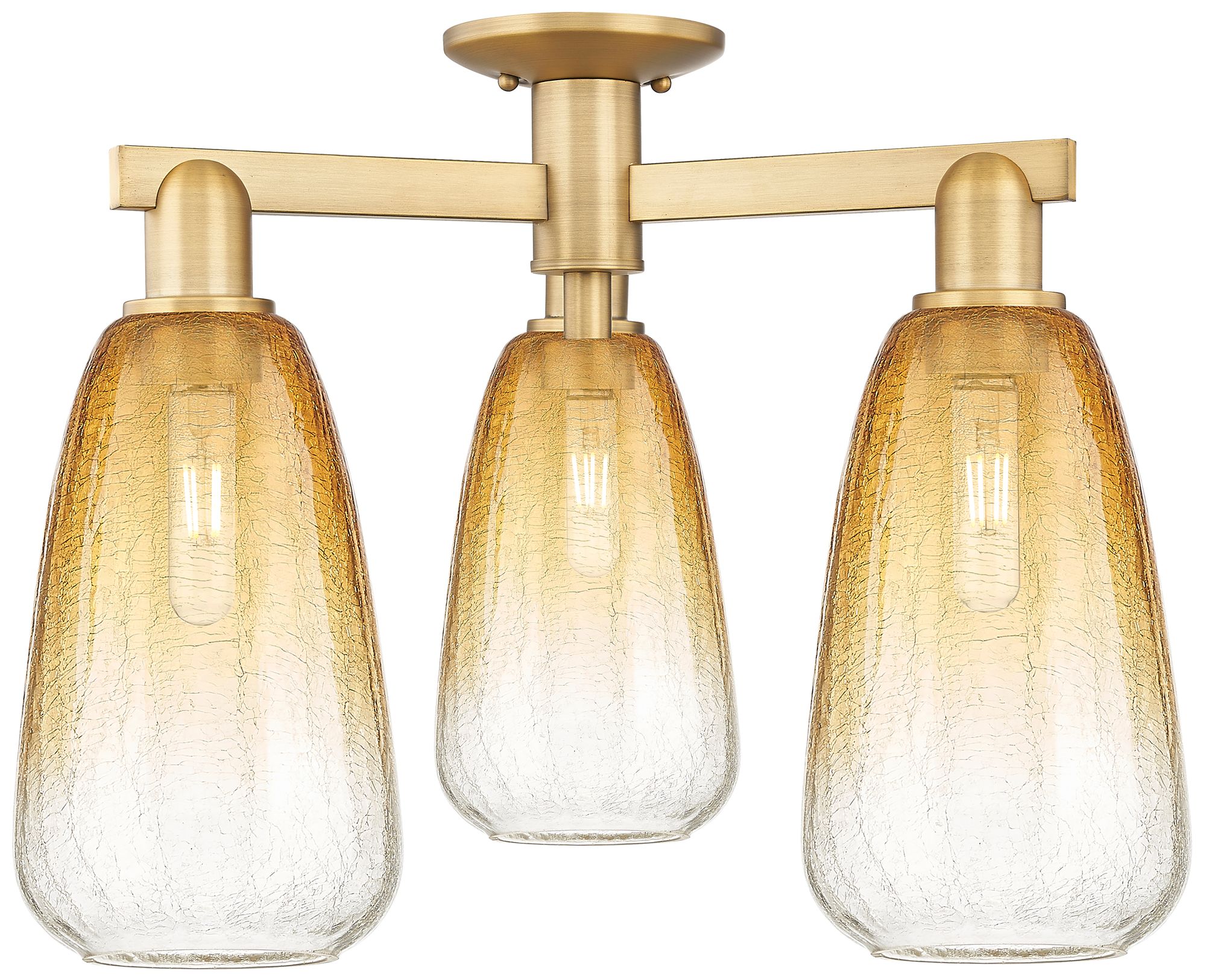Brookhaven Almond 24"W 3 Light Brushed Brass Semi-Flush w/ Amber Shade