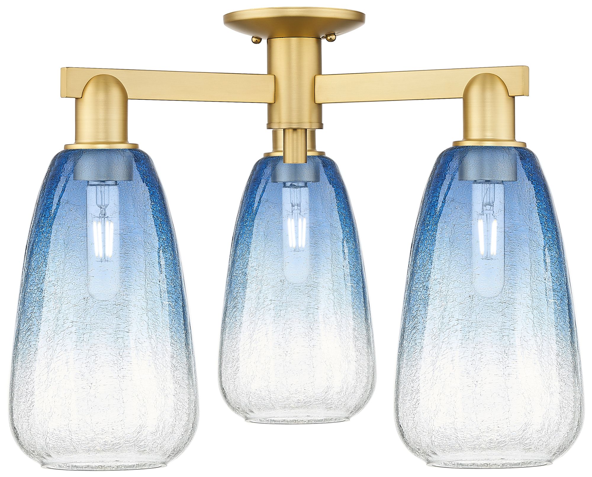 Brookhaven Almond 24"W 3 Light Satin Gold Semi-Flush w/ Sapphire Shade