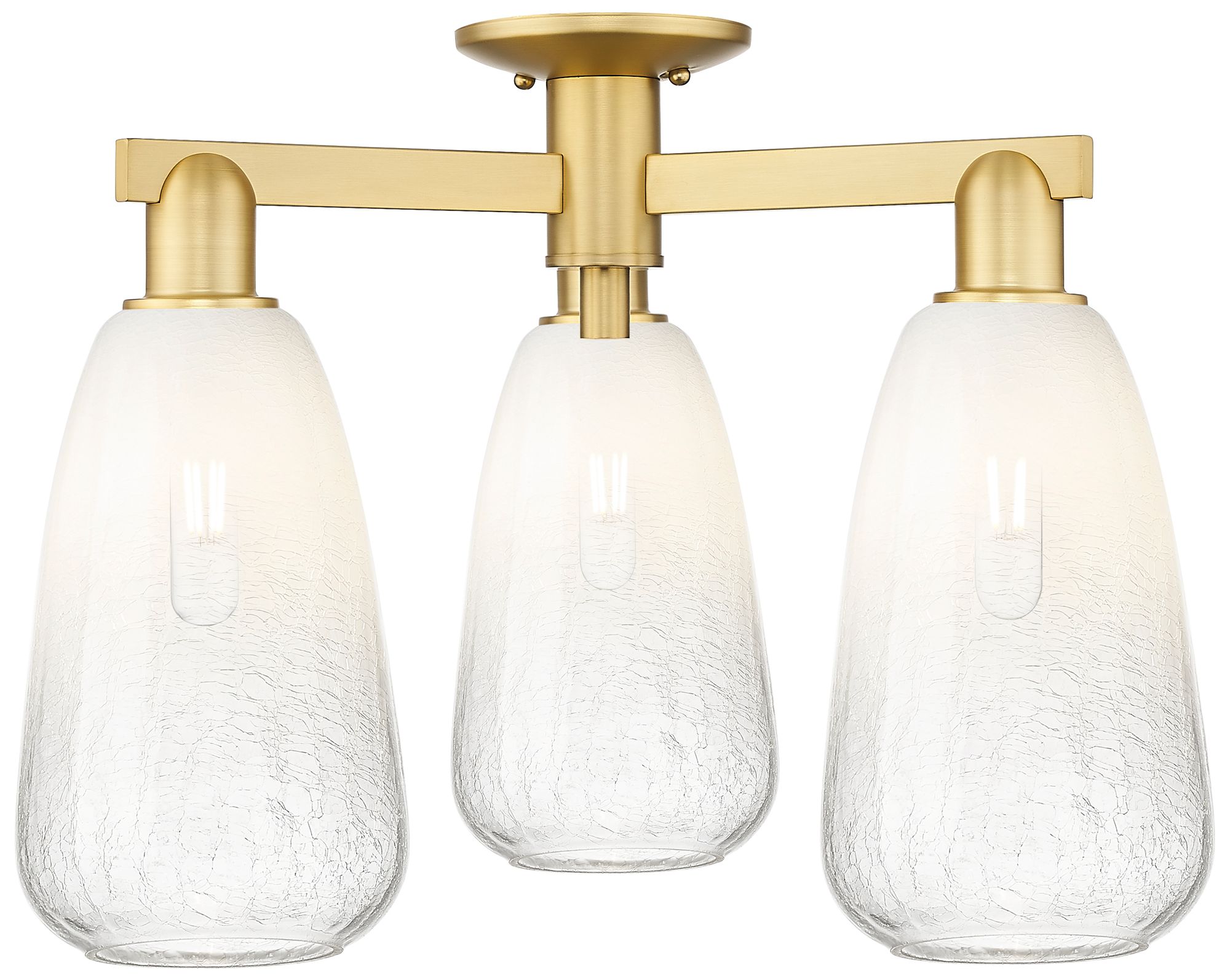 Cindyrella 19.75"W 3 Light Satin Gold Flush Mount With Seedy Glass Sha