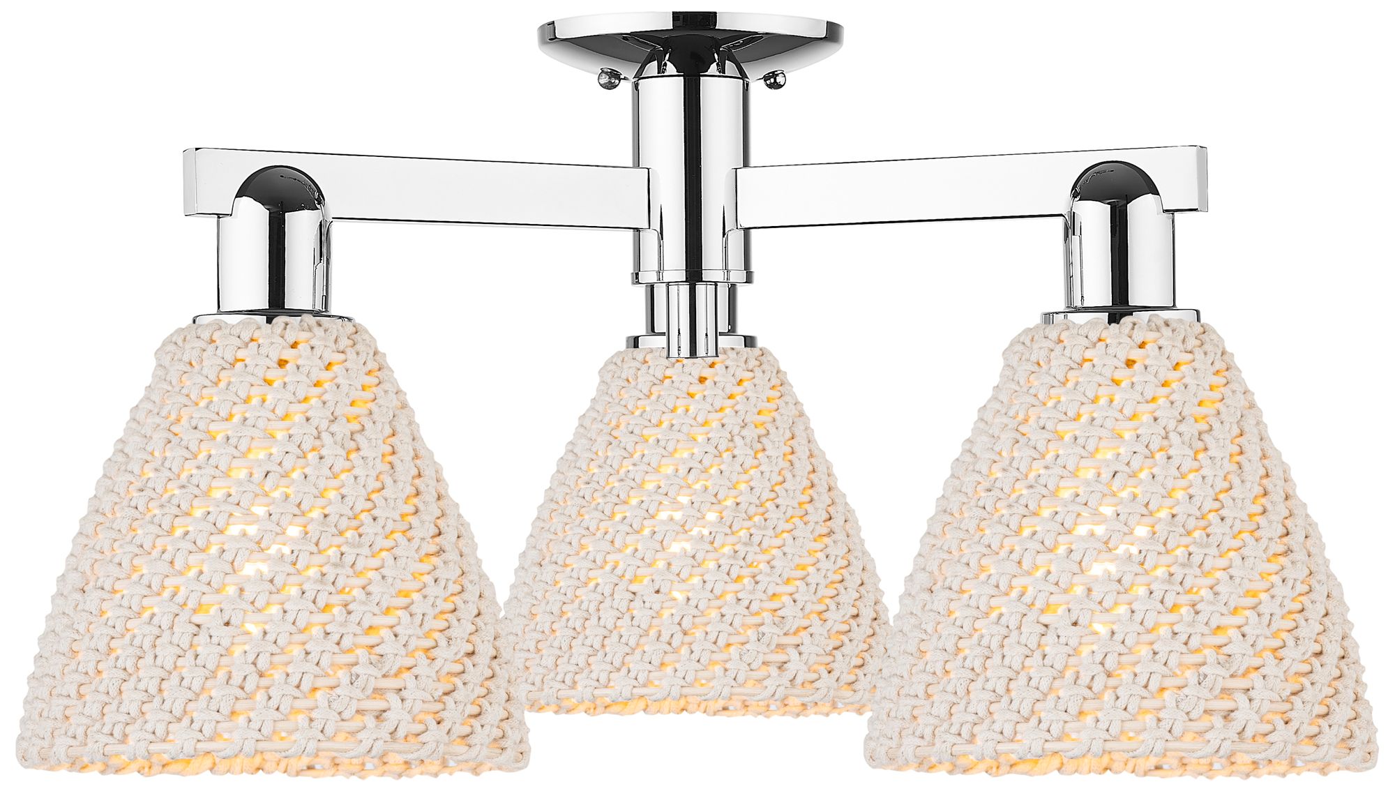 Natural Ballston Dome 25"W 3 Light Chrome Semi-Flush With Fiber Shade