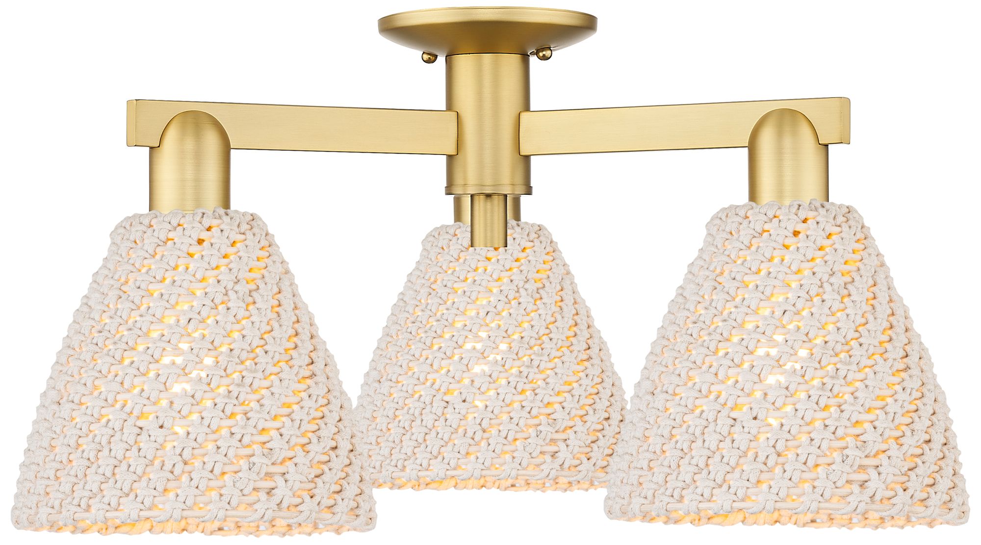 Natural Ballston Dome 25"W 3 Light Satin Gold Semi-Flush w/ Fiber Shade