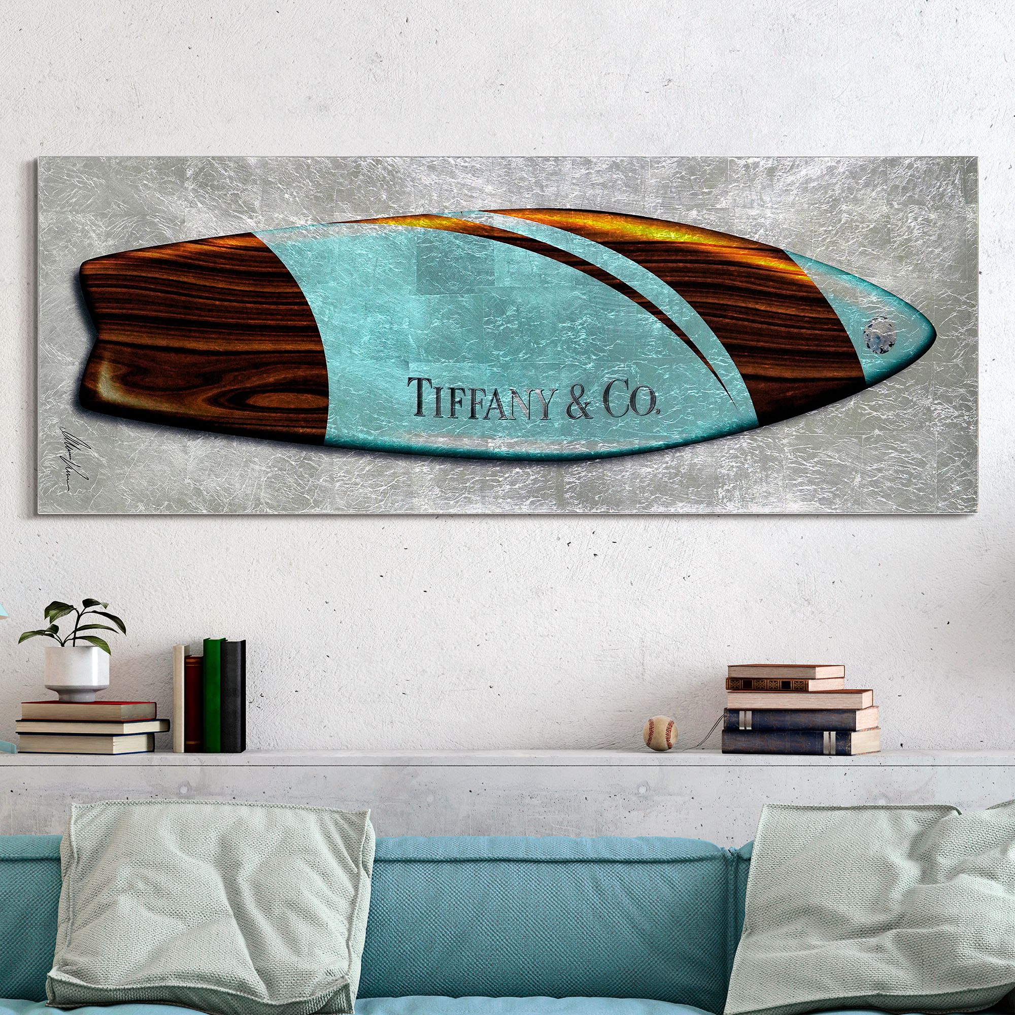 Fashion T Blue Surfboard 63" High Printed Glass Wall Art