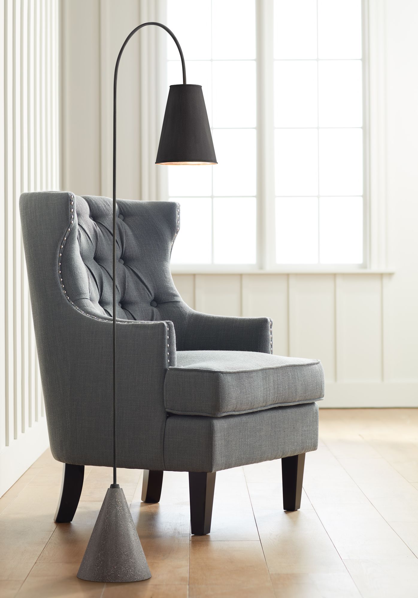 Currey & Company Lotz 65" Metal and Concrete Modern Arc Floor Lamp