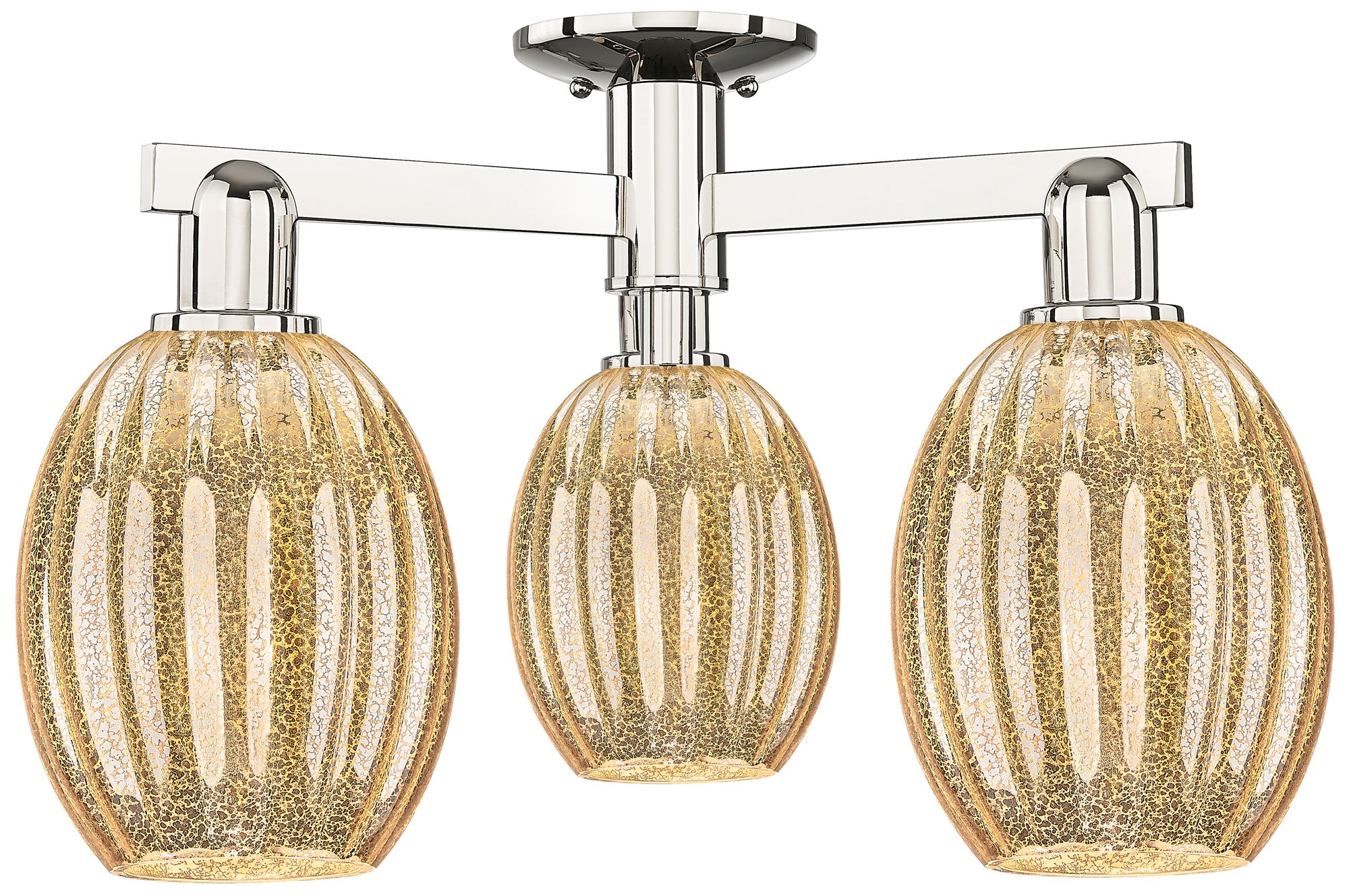 Newton Bell 19.63"W 3 Light Polished Nickel Flush Mount With Seedy Sha
