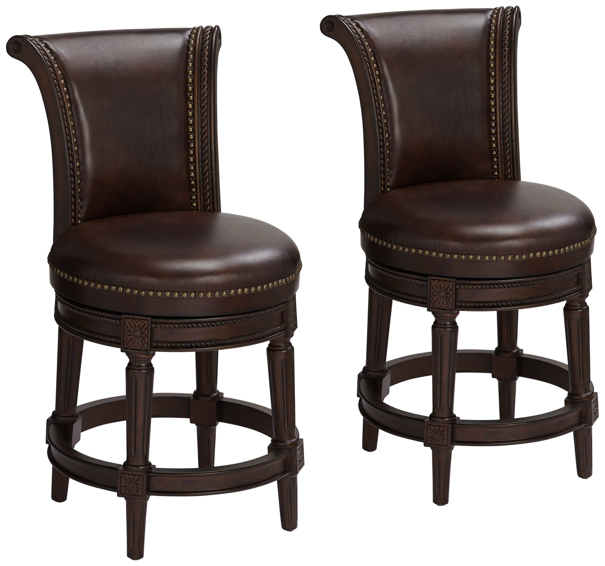 Addison 26" Mocha Brown Leather Swivel Counter Stools Set of 2