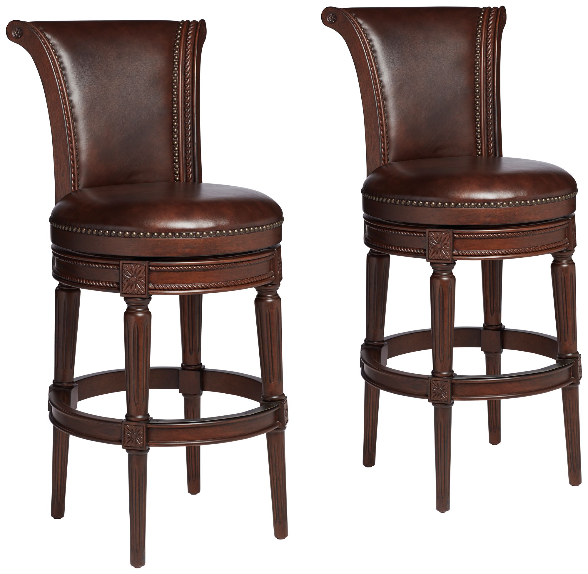 Addison 30" Mocha Brown Leather Swivel Bar Stools Set of 2