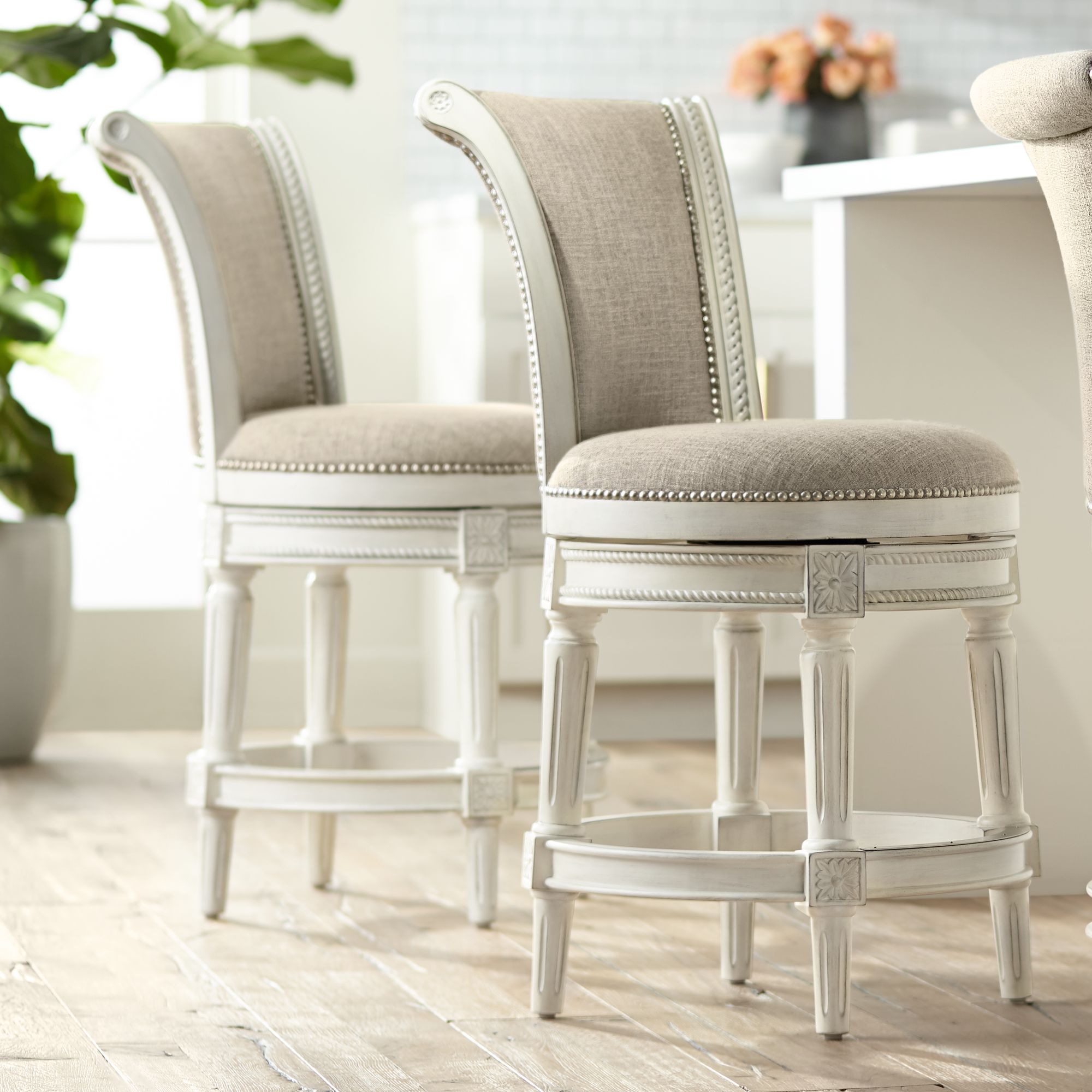 55 Downing Street Oliver 30 1/2" Cream Scroll Back Swivel Bar Stool