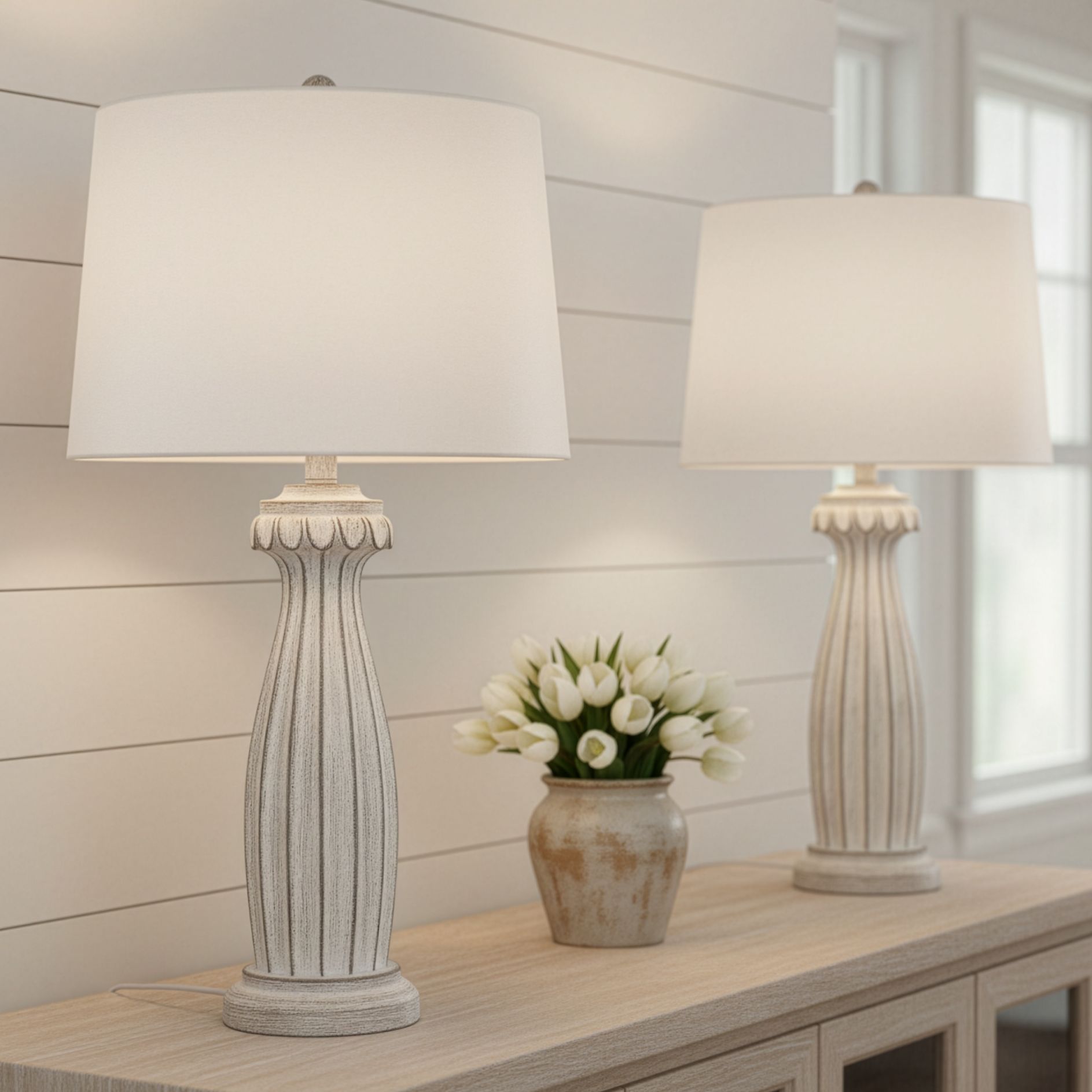 Rhodes 28 1/2" High Distressed White Traditional Table Lamp Set of 2