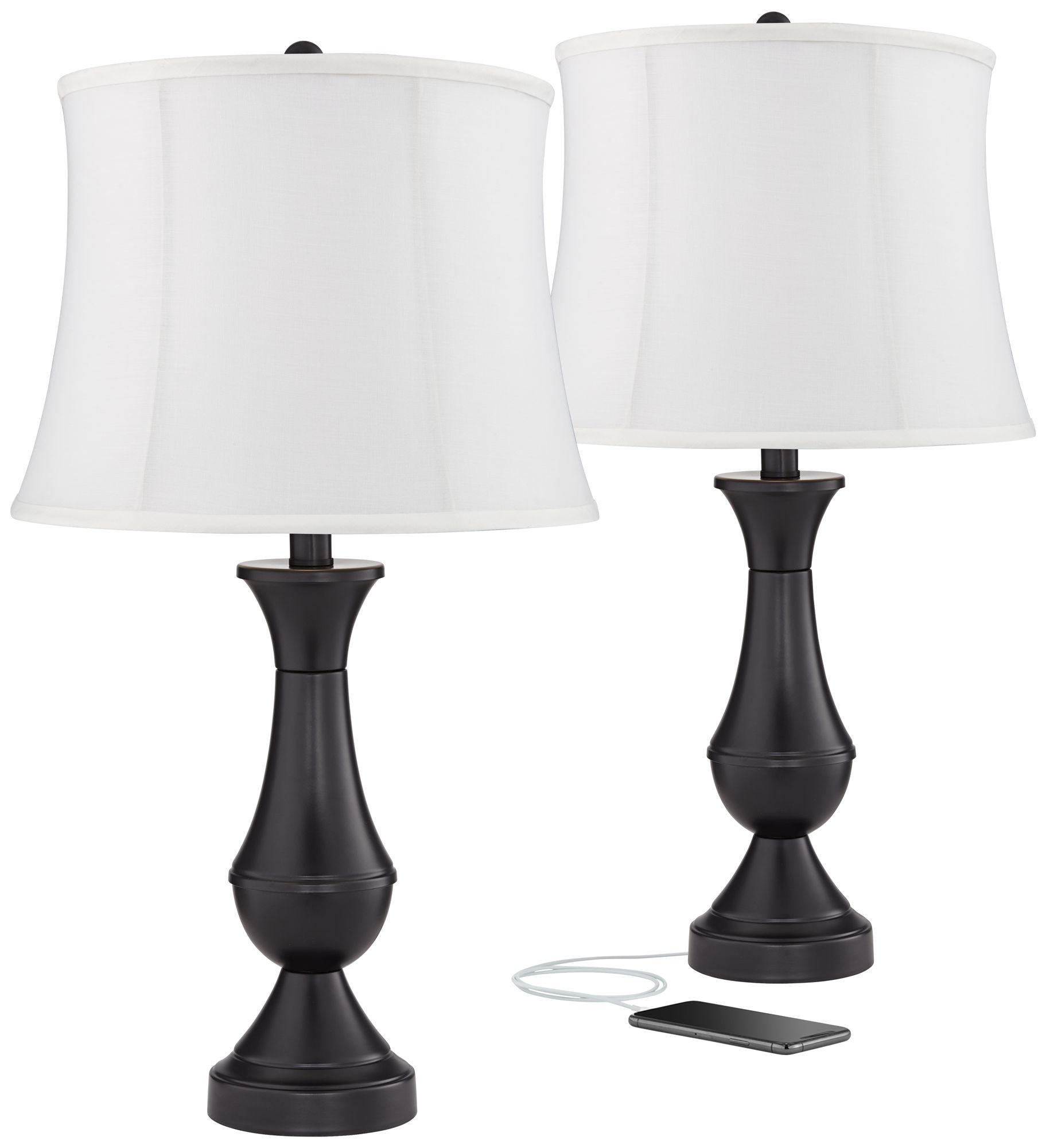 Blakely 25" White Shade USB LED Touch Table Lamps Set of 2