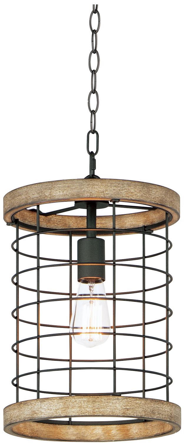 Maxim Homestead 10" Wide Black and Driftwood Mini Pendant