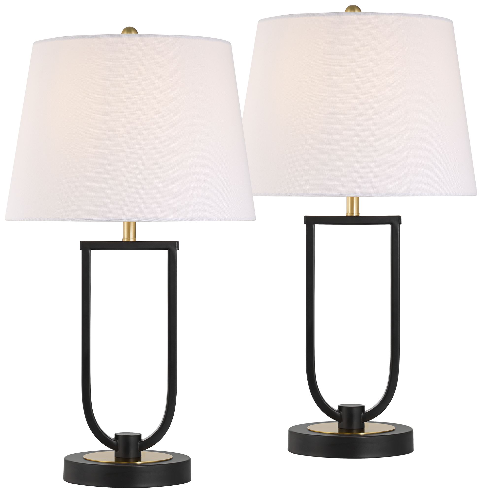 Pellana 24 3/4" High Black and Brass USB Table Lamp Set of 2