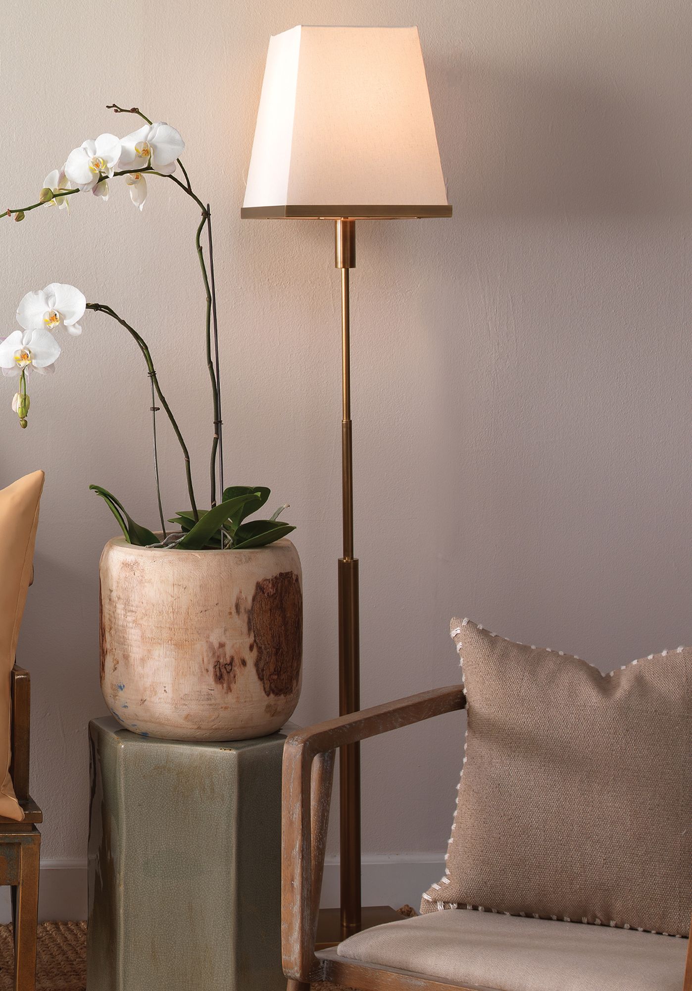 Jamie Young Jud 67" High Linen and Brass Modern Floor Lamp