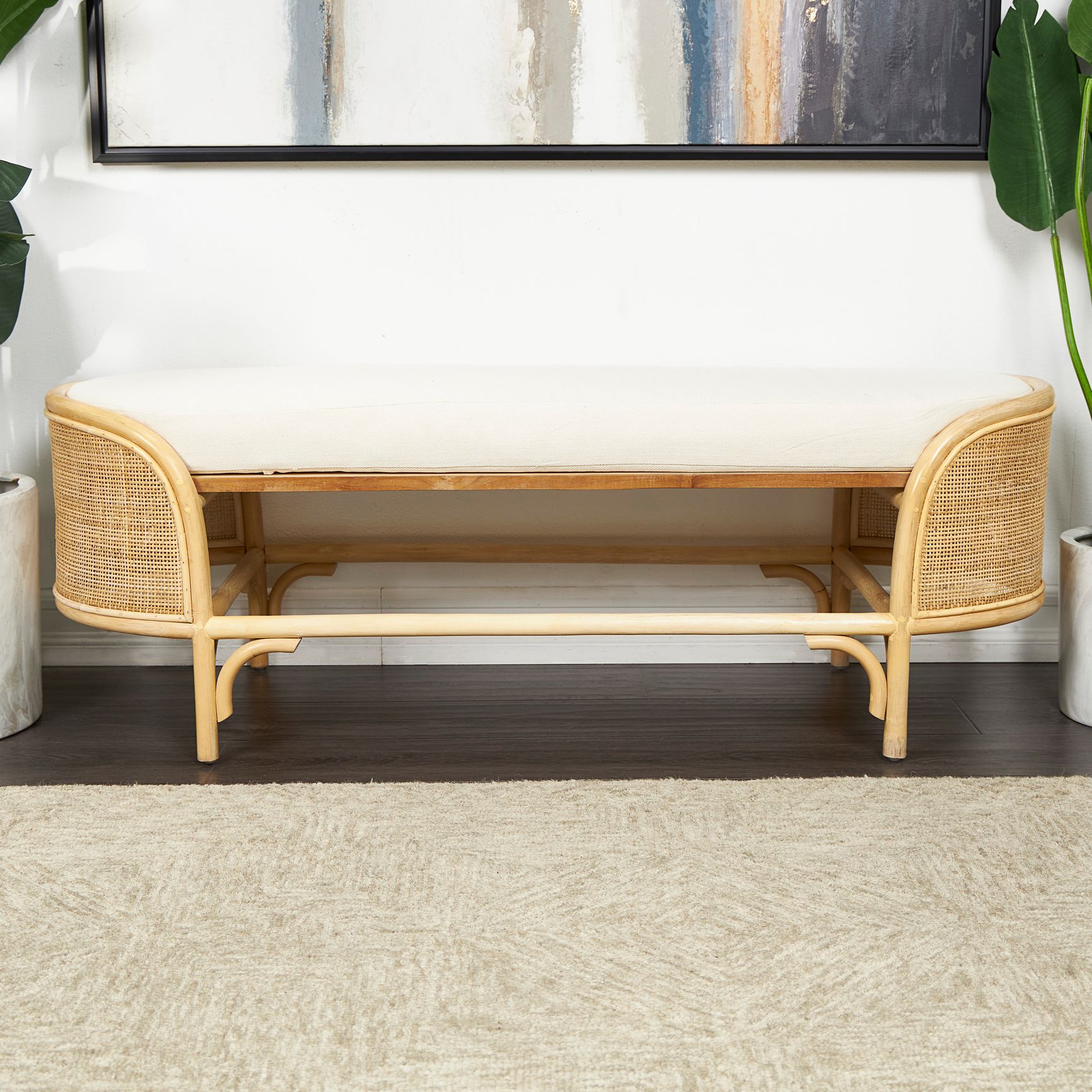 Nasim Bohemian Natural Jute and Metal Accent Bench