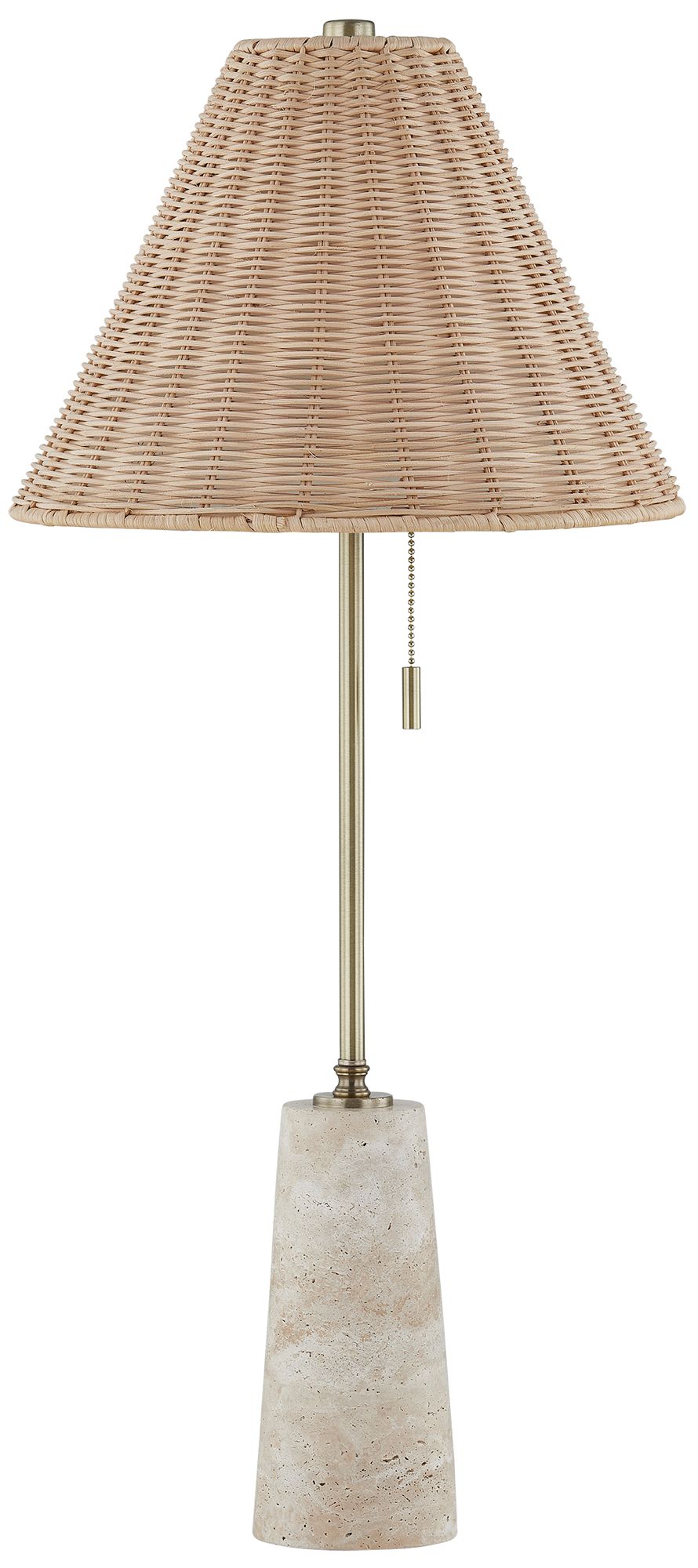 Forty West Lorraine 29" Travertine Buffet Lamp with Rattan Shade