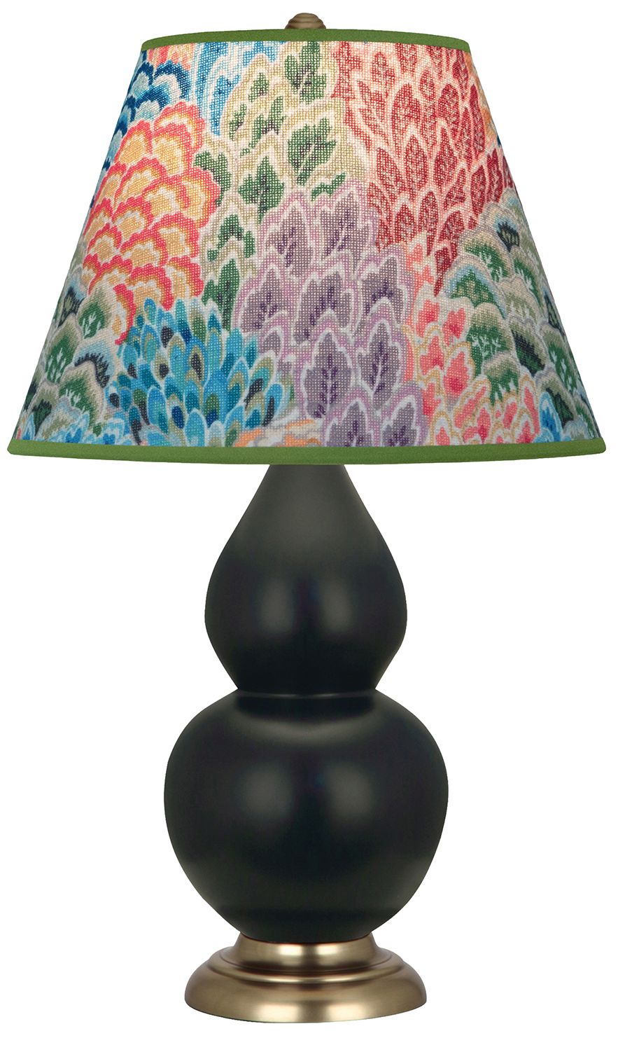Double Gourd 22.75"H Matte Obsidian And Brass Lamp w/ Spring Shade
