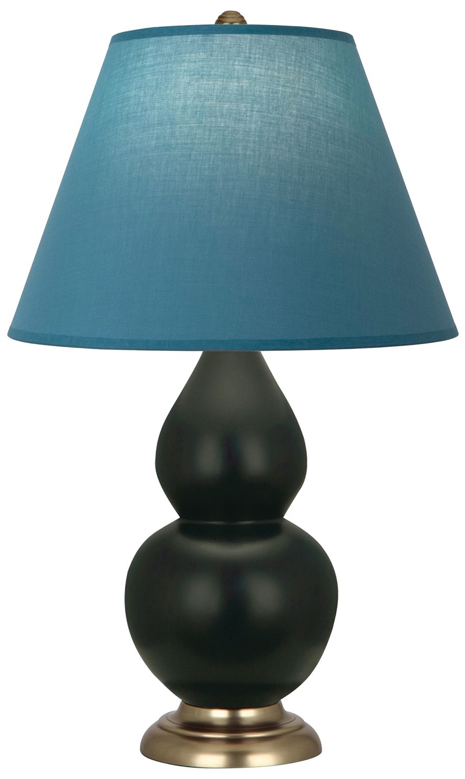Double Gourd 23"H Obsidian And Brass Lamp w/ Bright Blue And Gray Shade