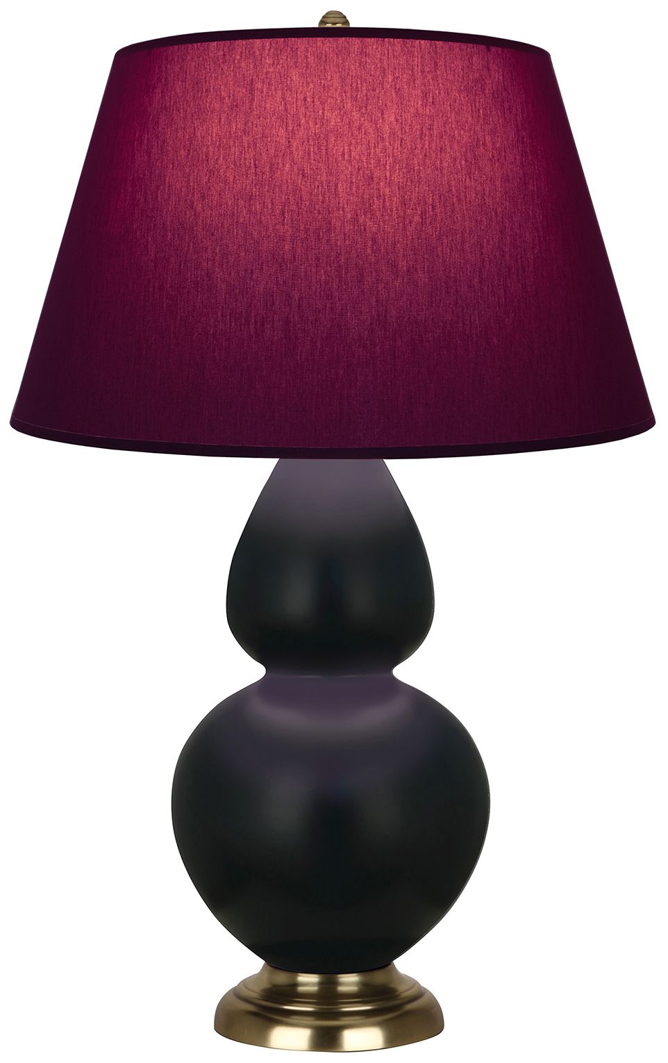 Double Gourd 31"H Obsidian And Brass Lamp w/ Plum And Lavender Shade