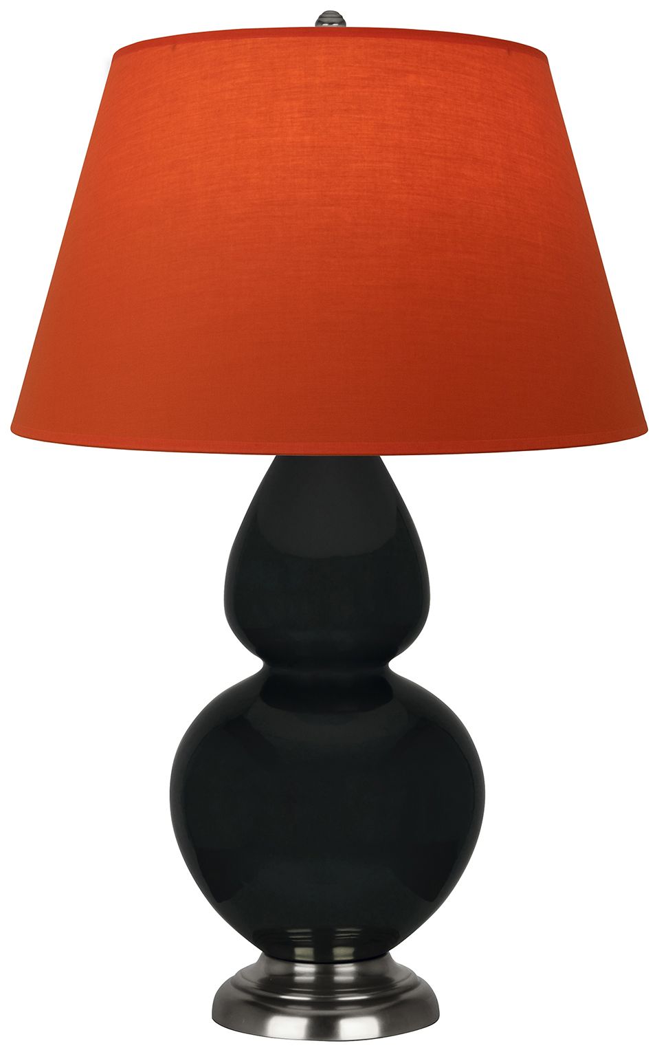 Double Gourd 31"H Obsidian And Silver Lamp w/ Tangerine And Taupe Shade