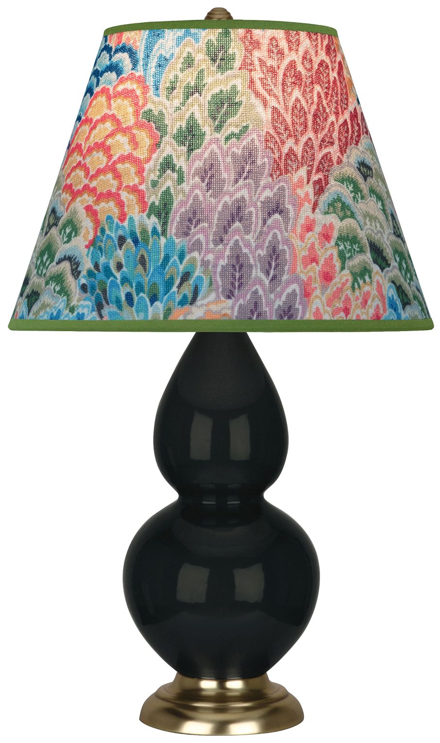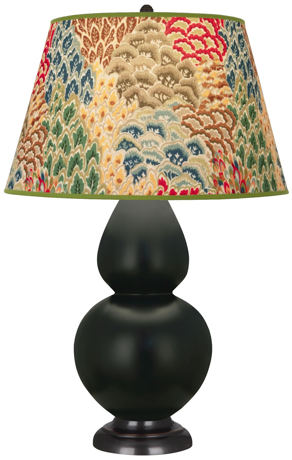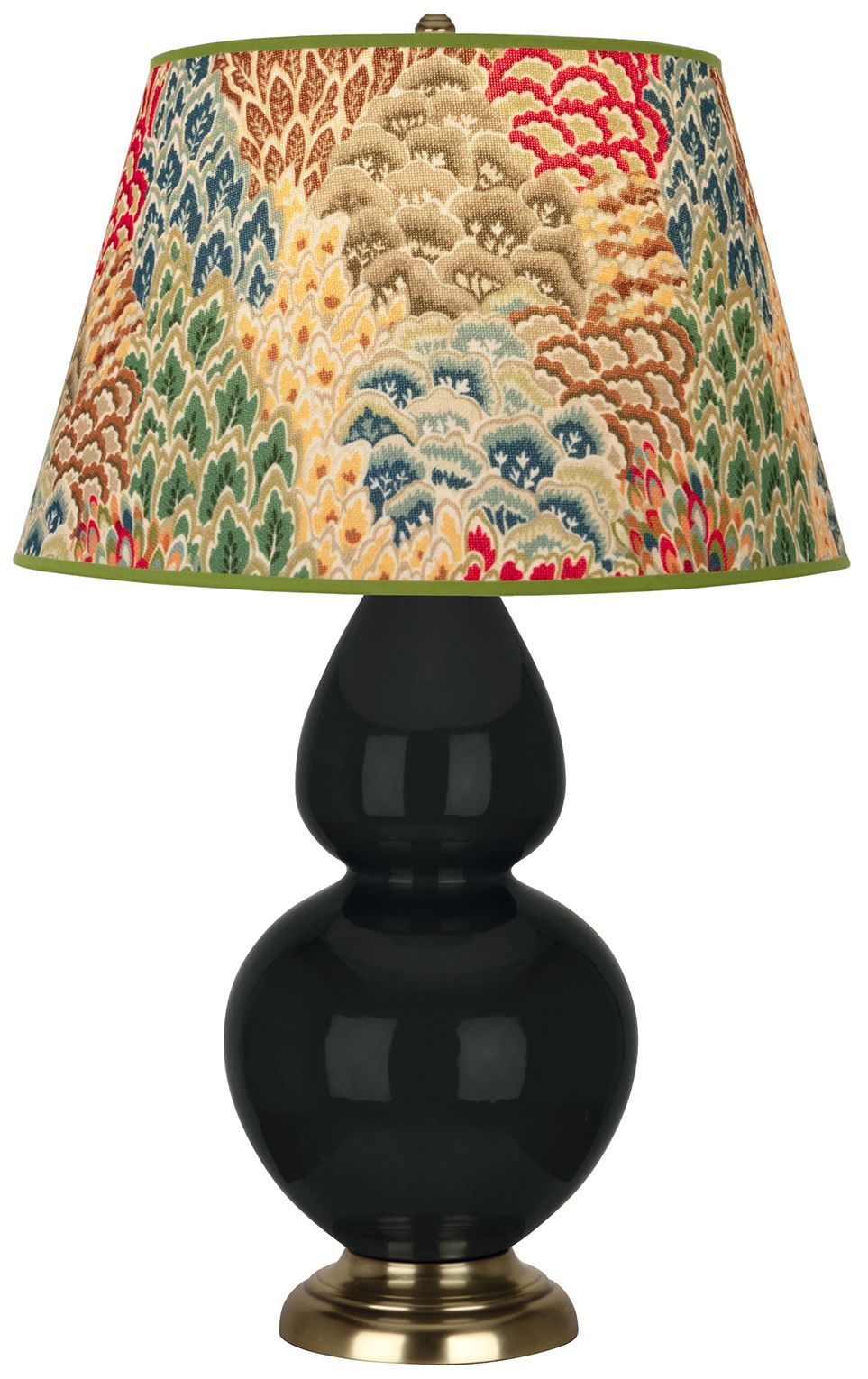 Double Gourd 31"H Obsidian And Brass Table Lamp w/ Fall Floral Shade