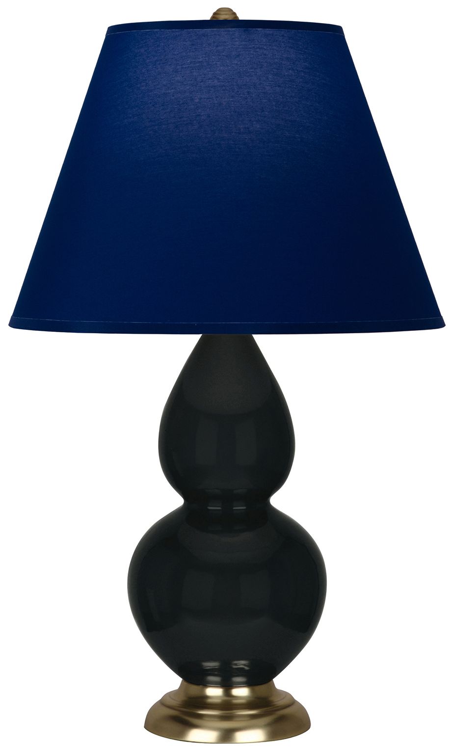 Double Gourd 22.75"H Obsidian And Brass Lamp w/ Navy And Gray Shade