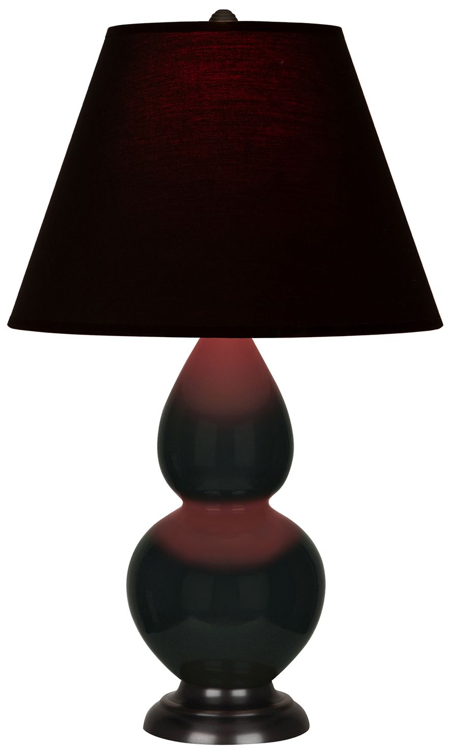 Double Gourd 22.75"H Obsidian And Bronze Lamp w/ Ink And Rose Shade