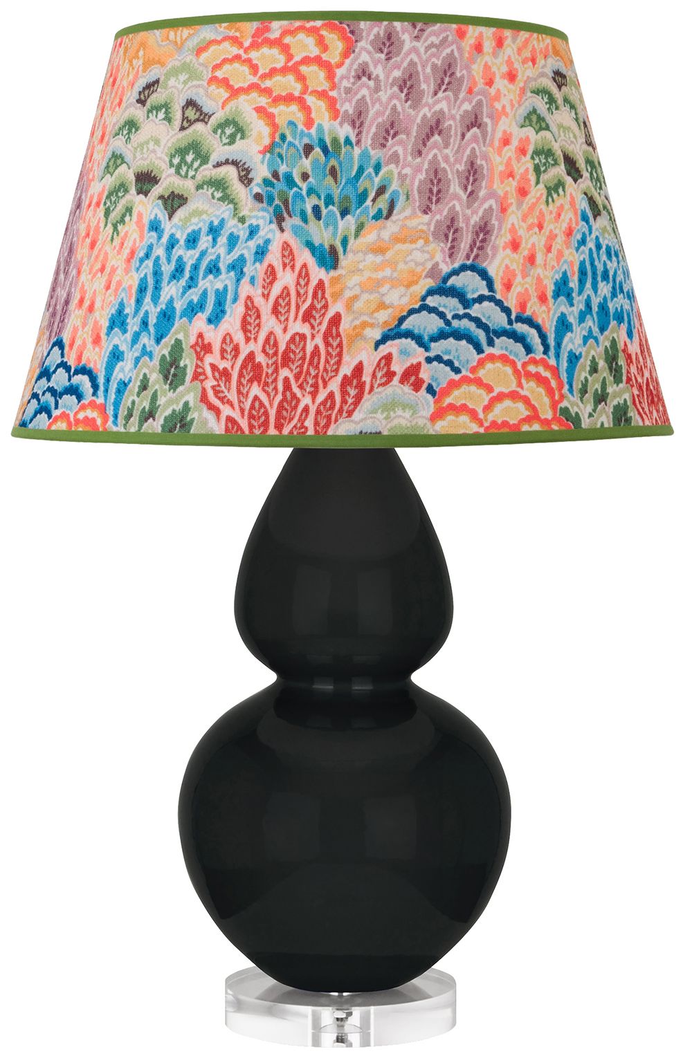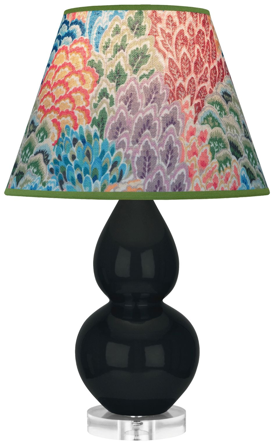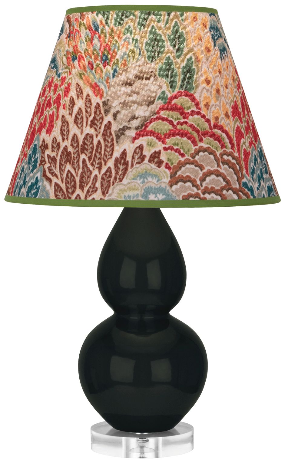 Double Gourd 30"H Matte Obsidian And Lucite Lamp w/ Fall Floral Shade